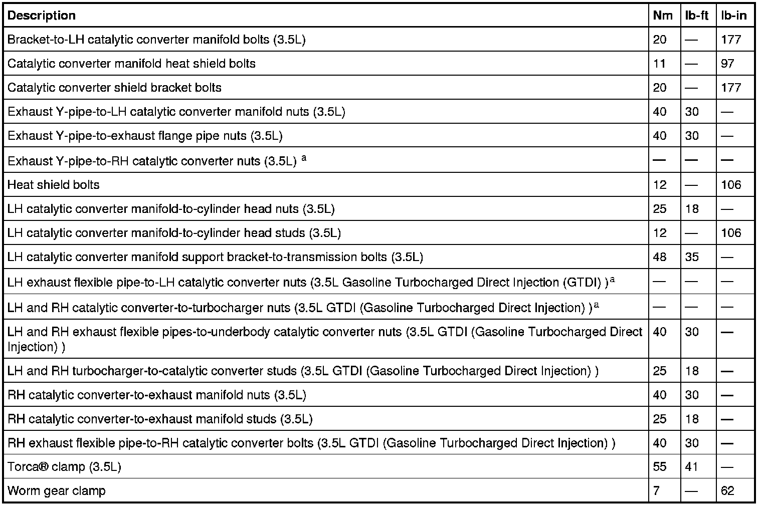Torque Specifications