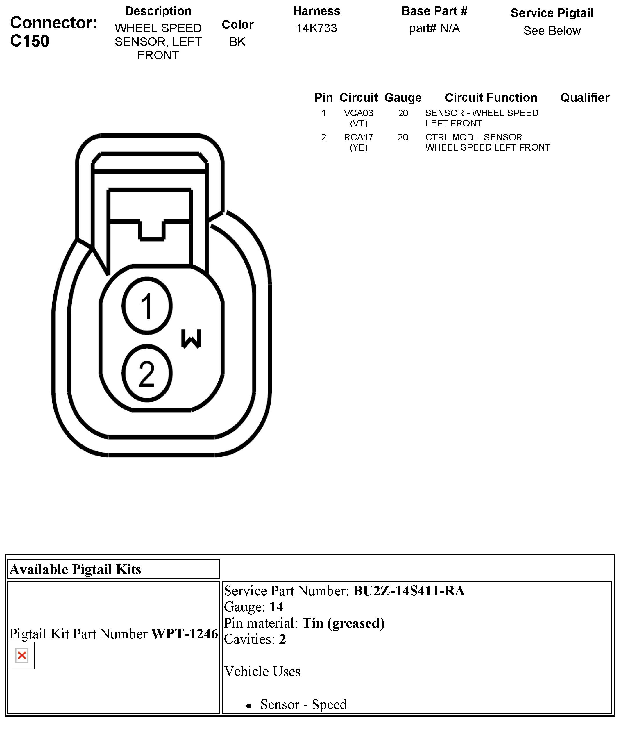C150 Wheel Speed Sensor, Left Front