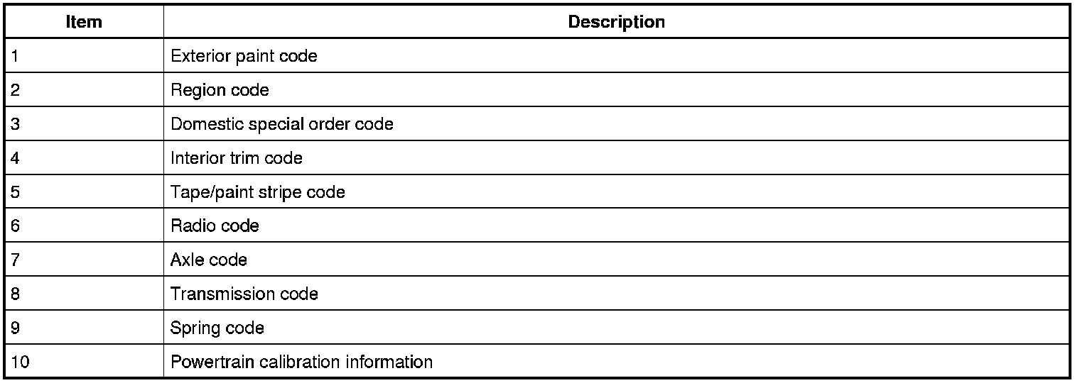 NOTE: Powertrain calibration information is limited to a maximum of 5 characters per line on the VC (Vehicle Certification) label. Because of this, calibration identification consisting of more than 5 characters will wrap to the second line on the VC (Vehicle Certification) label.