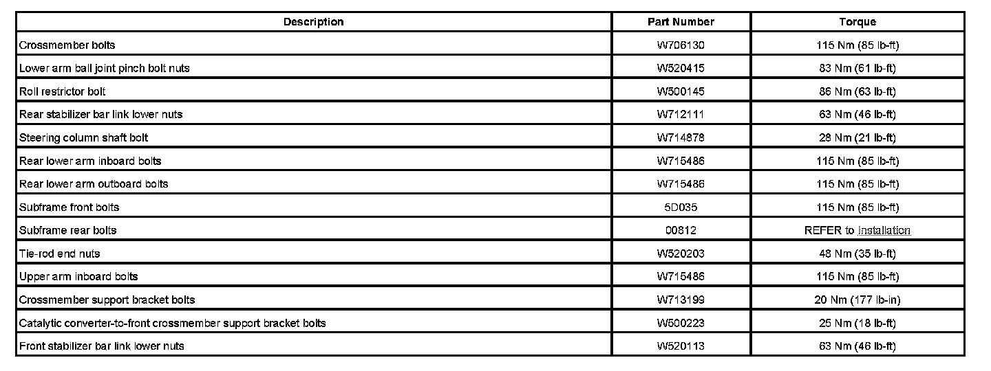 Torque Specifications: