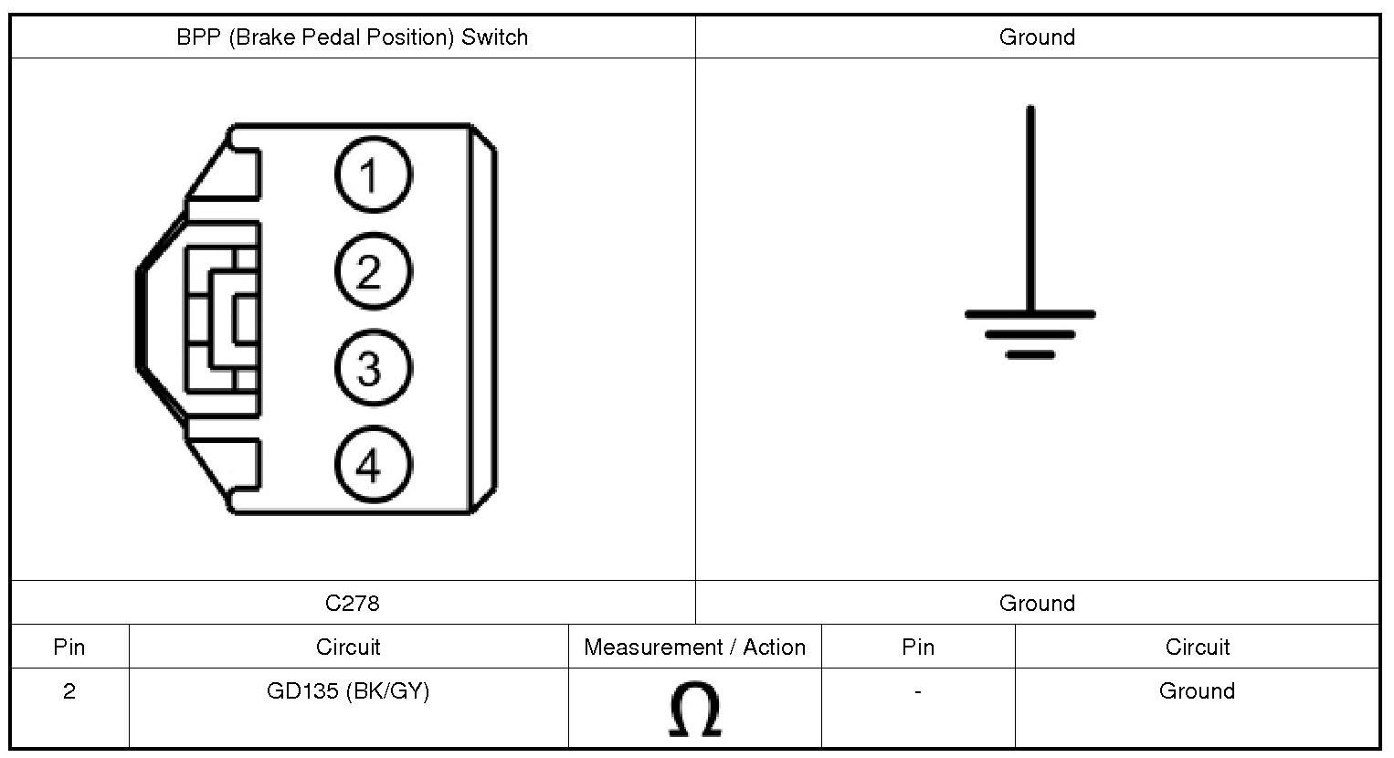 1. Disconnect: BPP (Brake Pedal Position) Switch.