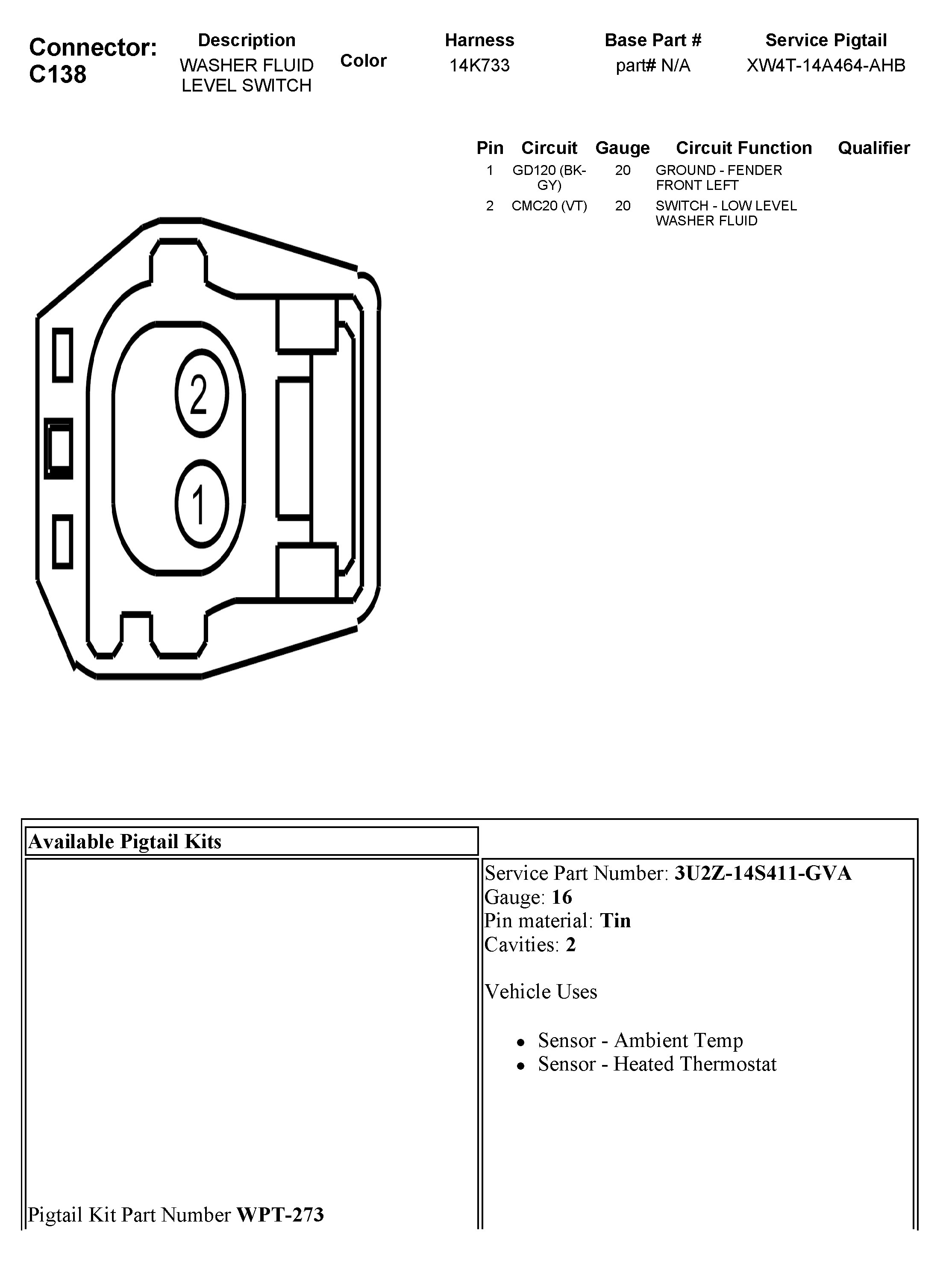 Washer Fluid Level Switch