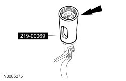 3. Inject the total vehicle PAG (Polyalkylene Glycol) oil capacity minus 60 ml (2.03 fl. oz) to the low-side service port during system charging. For the total PAG (Polyalkylene Glycol) oil capacity specification, REFER to Material(s) .