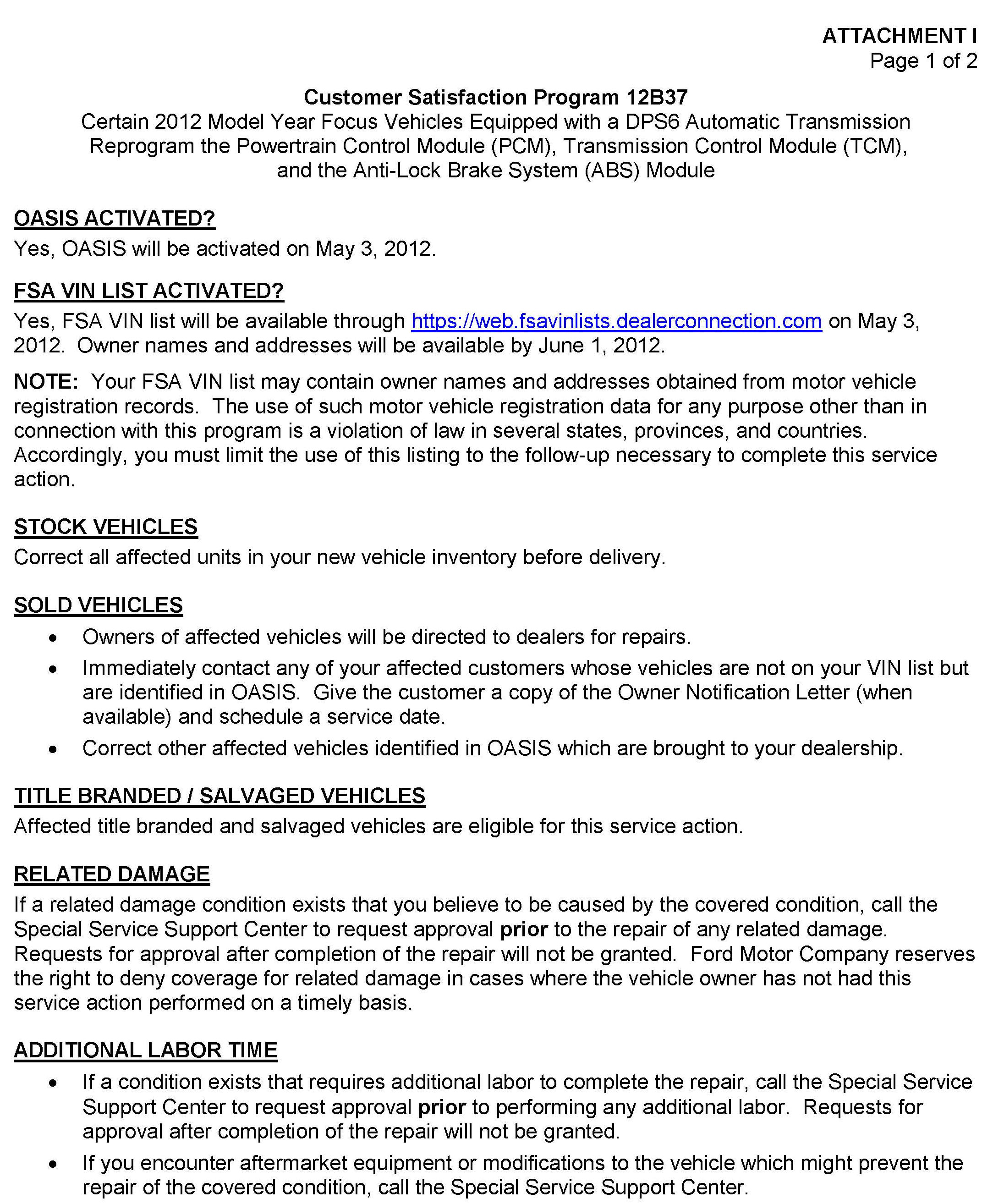 Campaign - ECM, TCM And ABS Module Software Updates