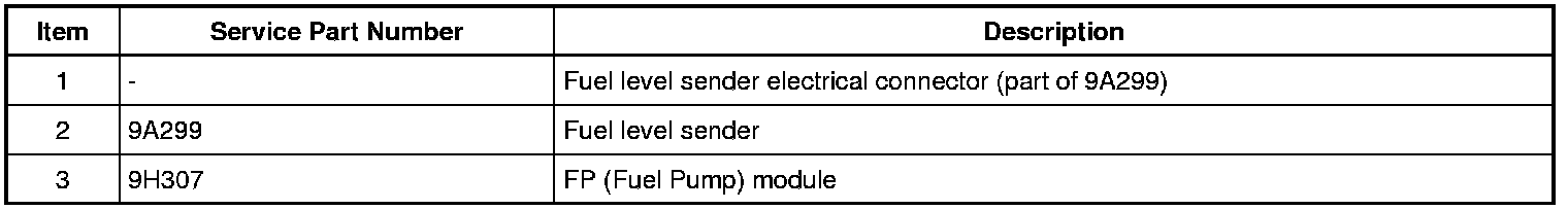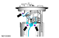 2. Disconnect the fuel level sender electrical connector. Depress the lock tabs and slide the fuel level sender upwards, and remove the sender from the FP (Fuel Pump) assembly.