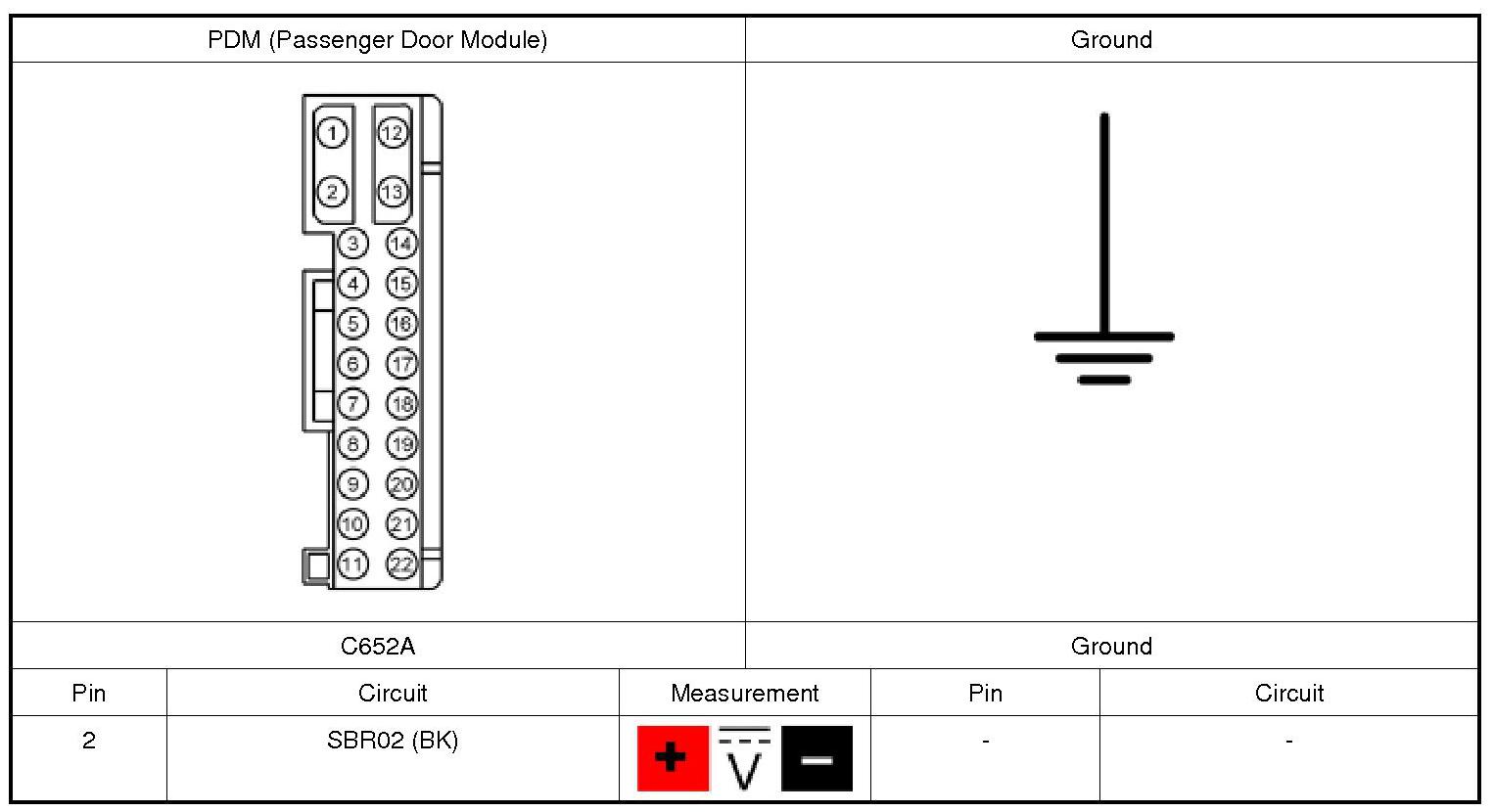 2. CHECK THE PDM (Passenger Door Module) GROUND CIRCUIT FOR AN OPEN