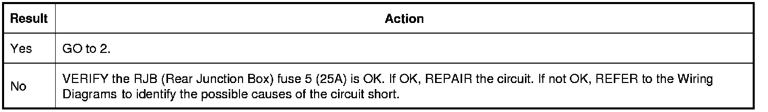Verify RJB (Rear Junction Box) fuse 5 (25A) is OK.