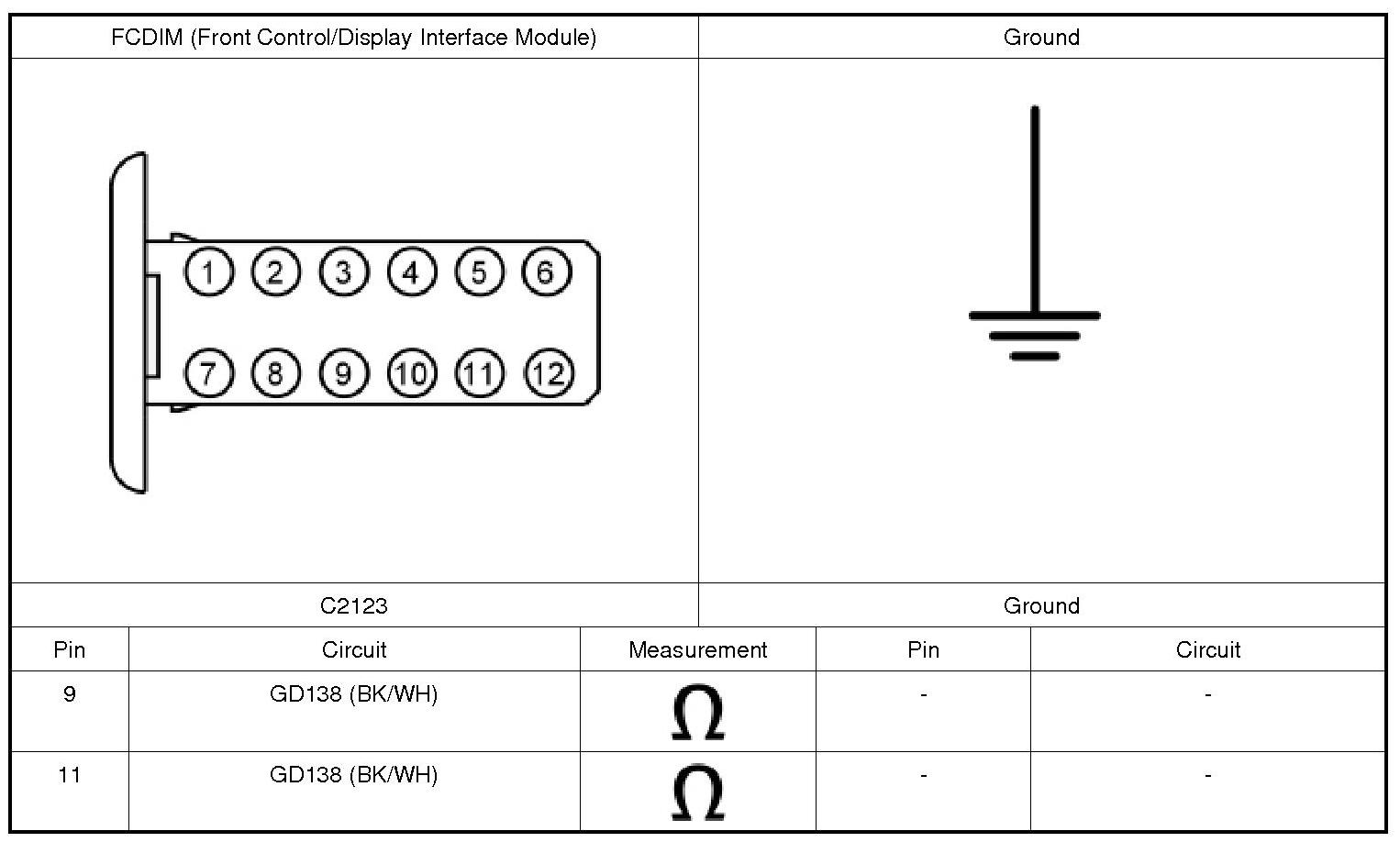 2. CHECK THE FCDIM (Front Control/Display Interface Module) GROUND CIRCUIT FOR AN OPEN