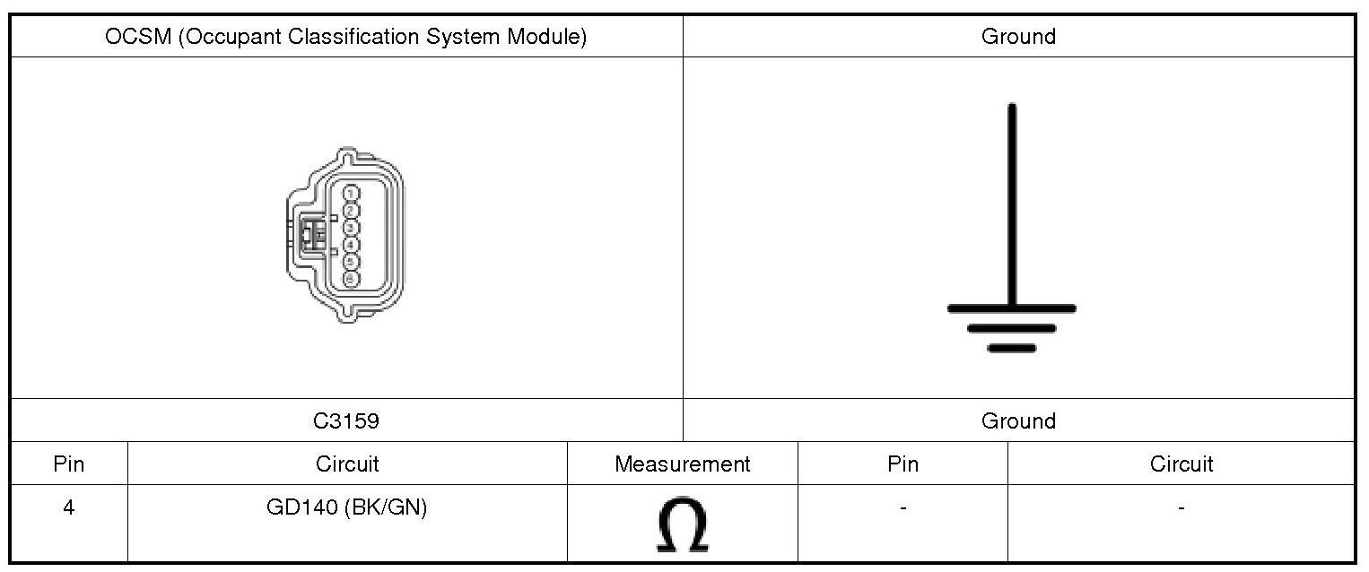 2. CHECK THE OCSM (Occupant Classification System Module) GROUND CIRCUIT FOR AN OPEN