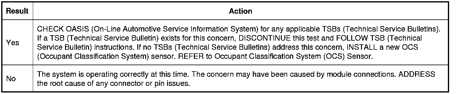 4. CHECK FOR CORRECT OCSM (Occupant Classification System Module) OPERATION