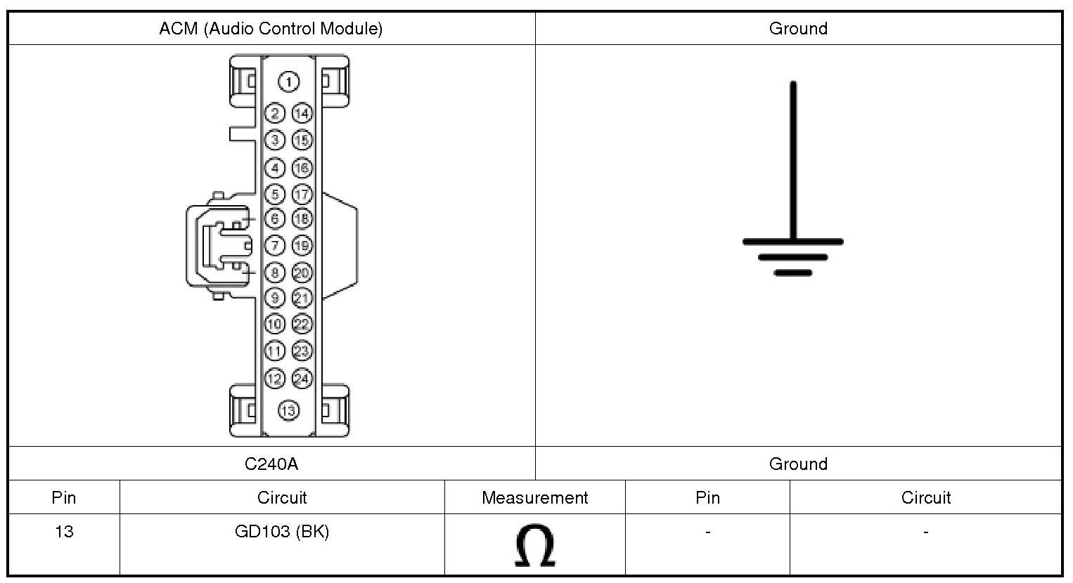 4. CHECK THE ACM (Audio Control Module) GROUND CIRCUIT FOR AN OPEN