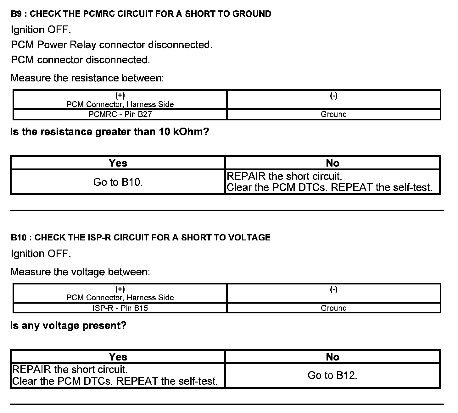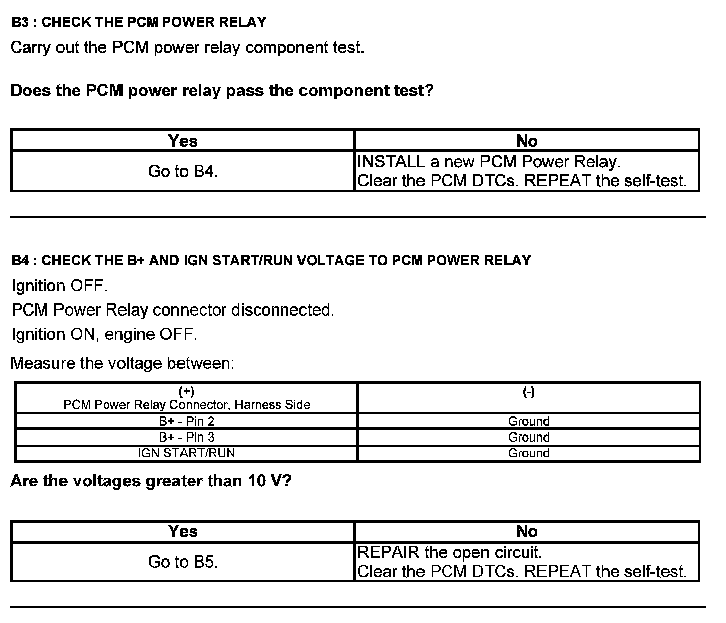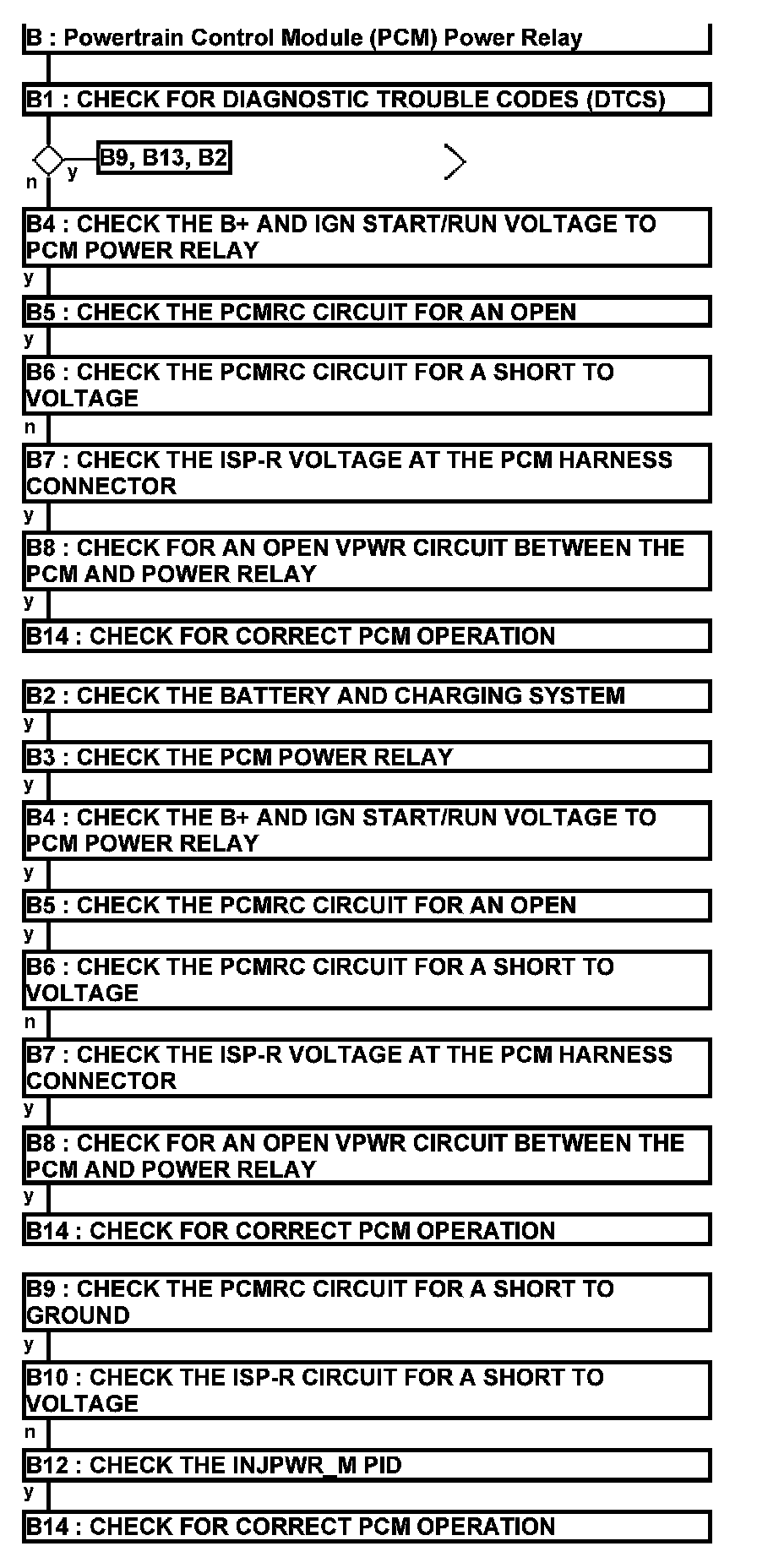 Home >> Ford >> 2012 >> Focus L4-2.0L >> Repair and Diagnosis >> Powertrain Management >> Computers and Control Systems >> Testing and Inspection >> Pinpoint Tests >> Test B: Powertrain Control Module (PCM) Power Relay