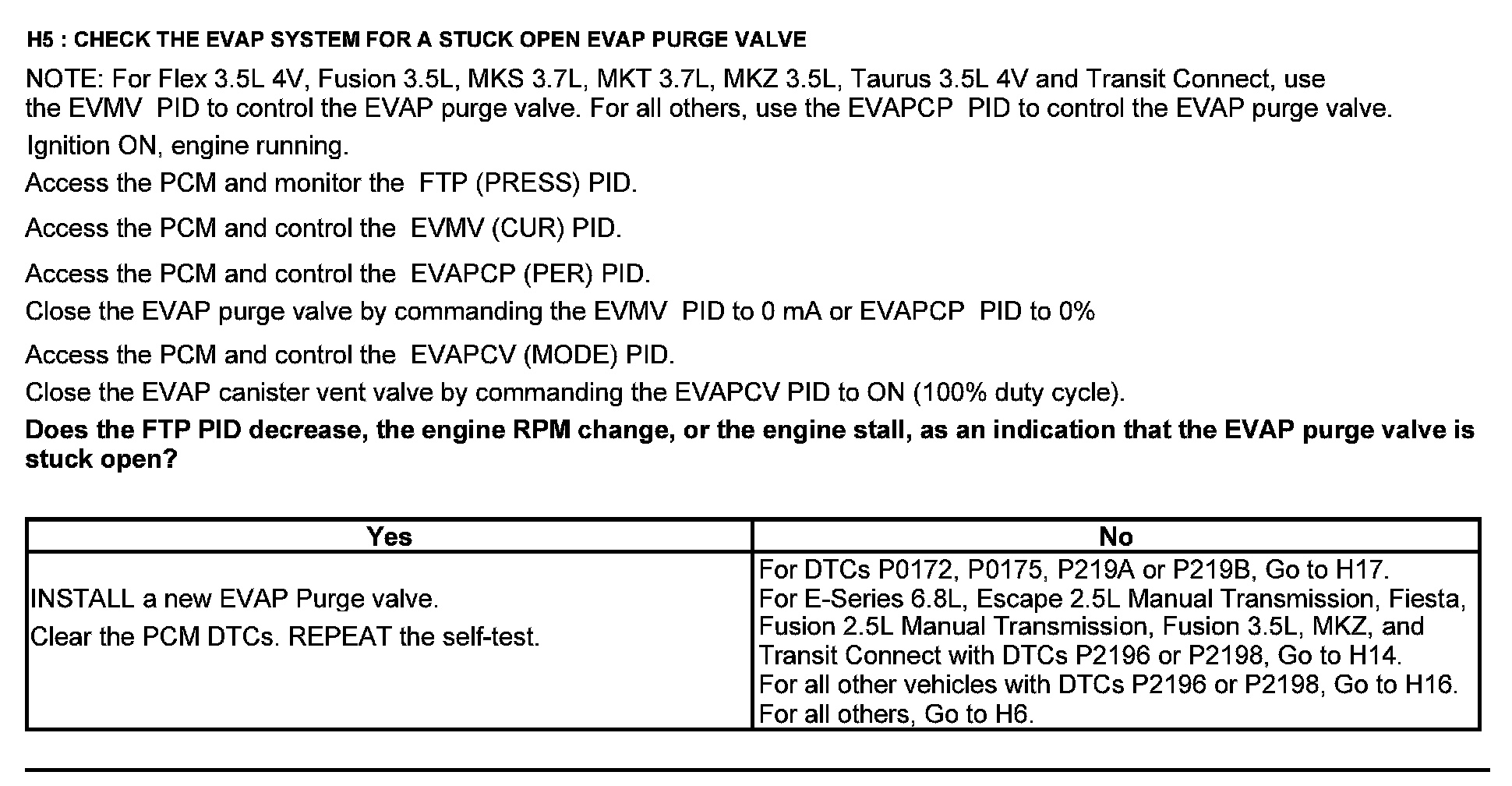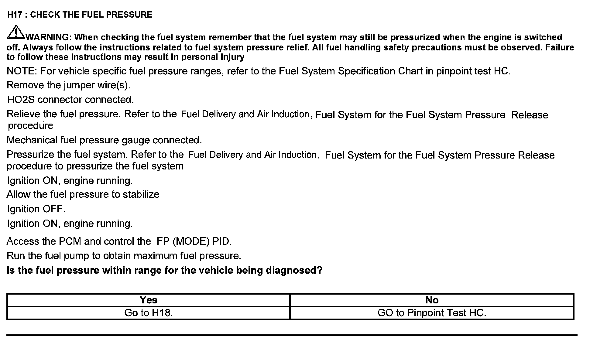 Home >> Ford >> 2012 >> Focus L4-2.0L >> Repair and Diagnosis >> Powertrain Management >> Computers and Control Systems >> Testing and Inspection >> Pinpoint Tests >> Test H: Fuel Control