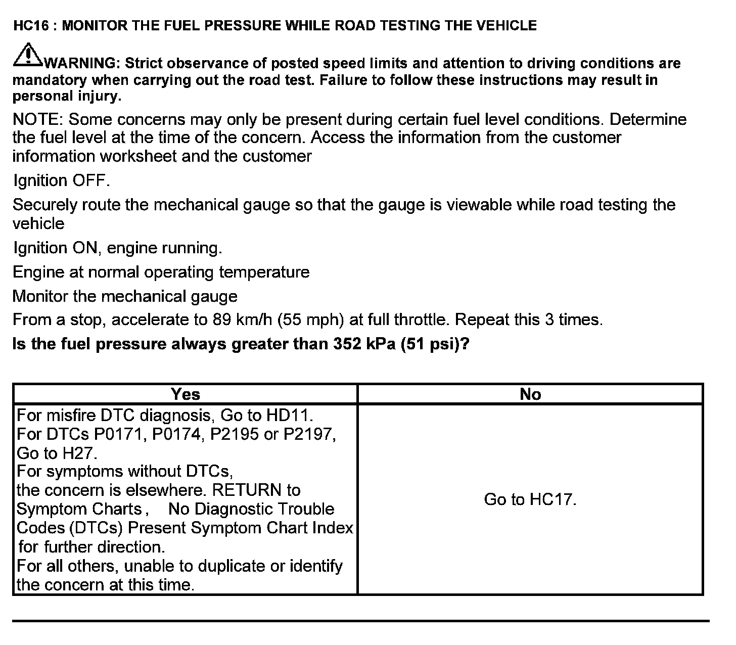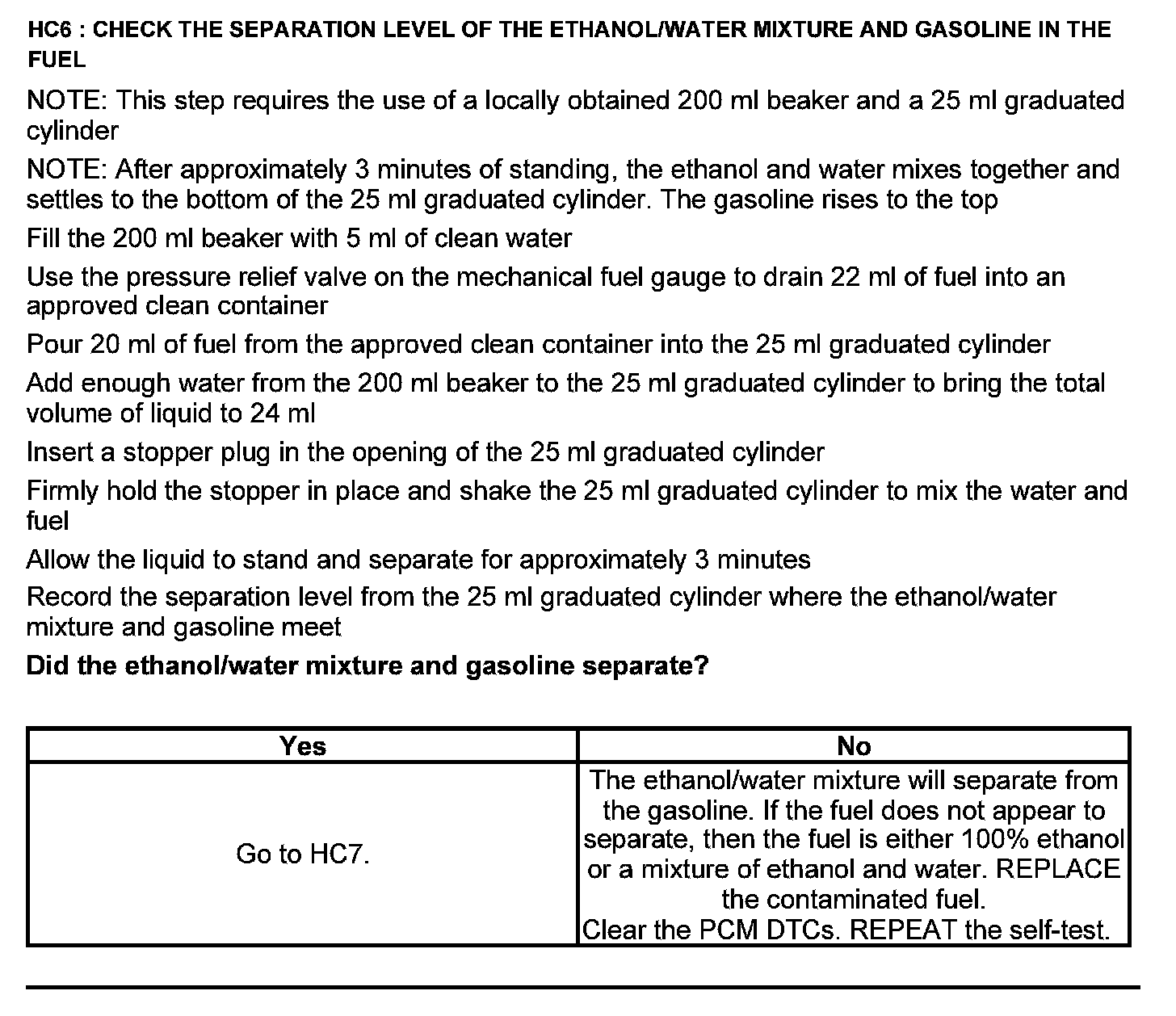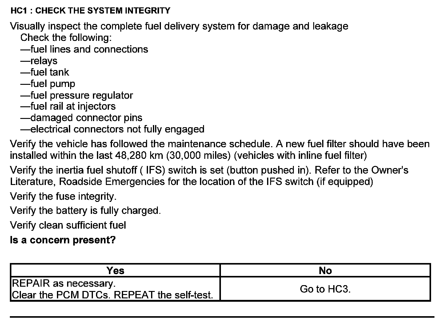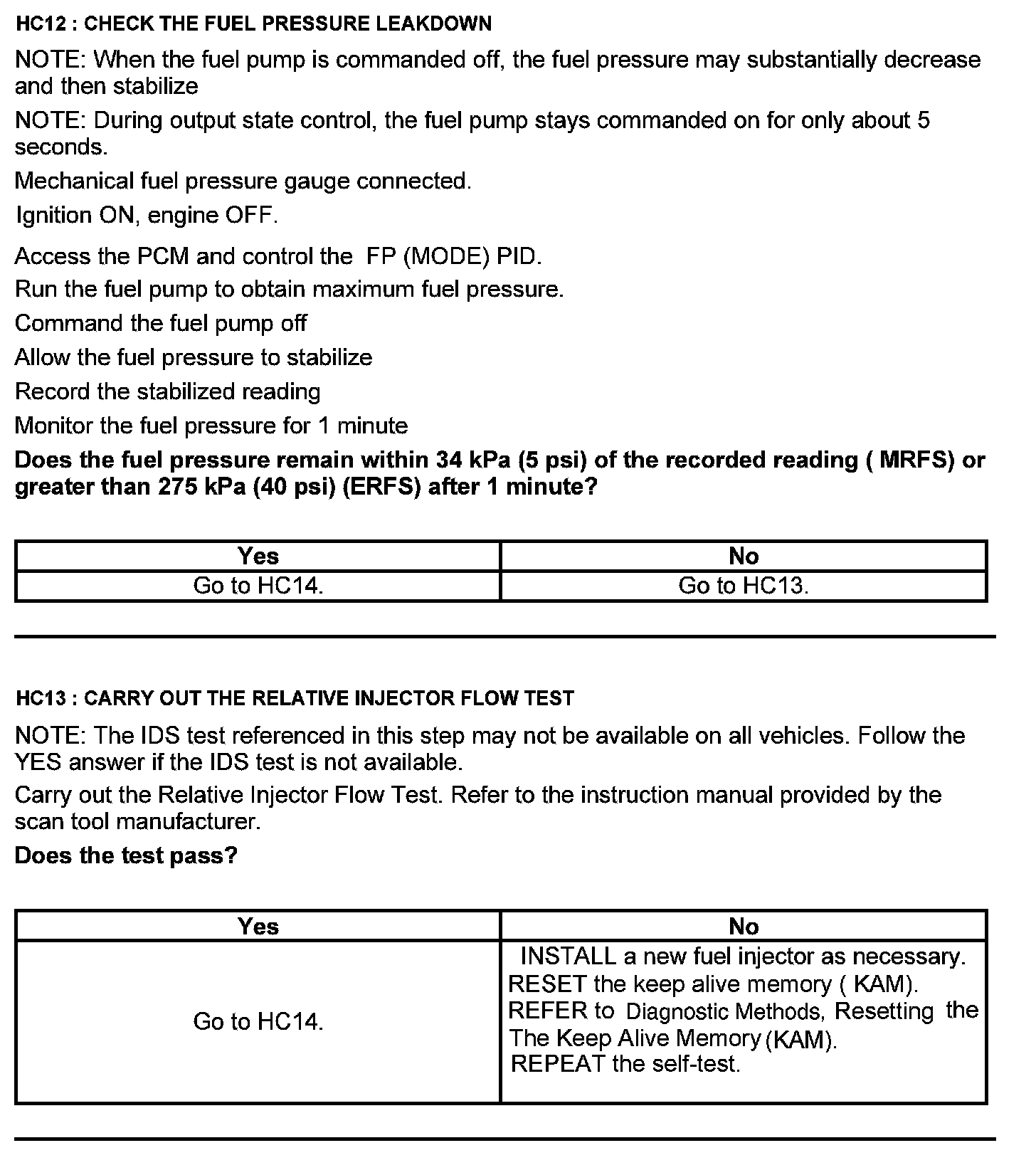 Test HC: Fuel Delivery System