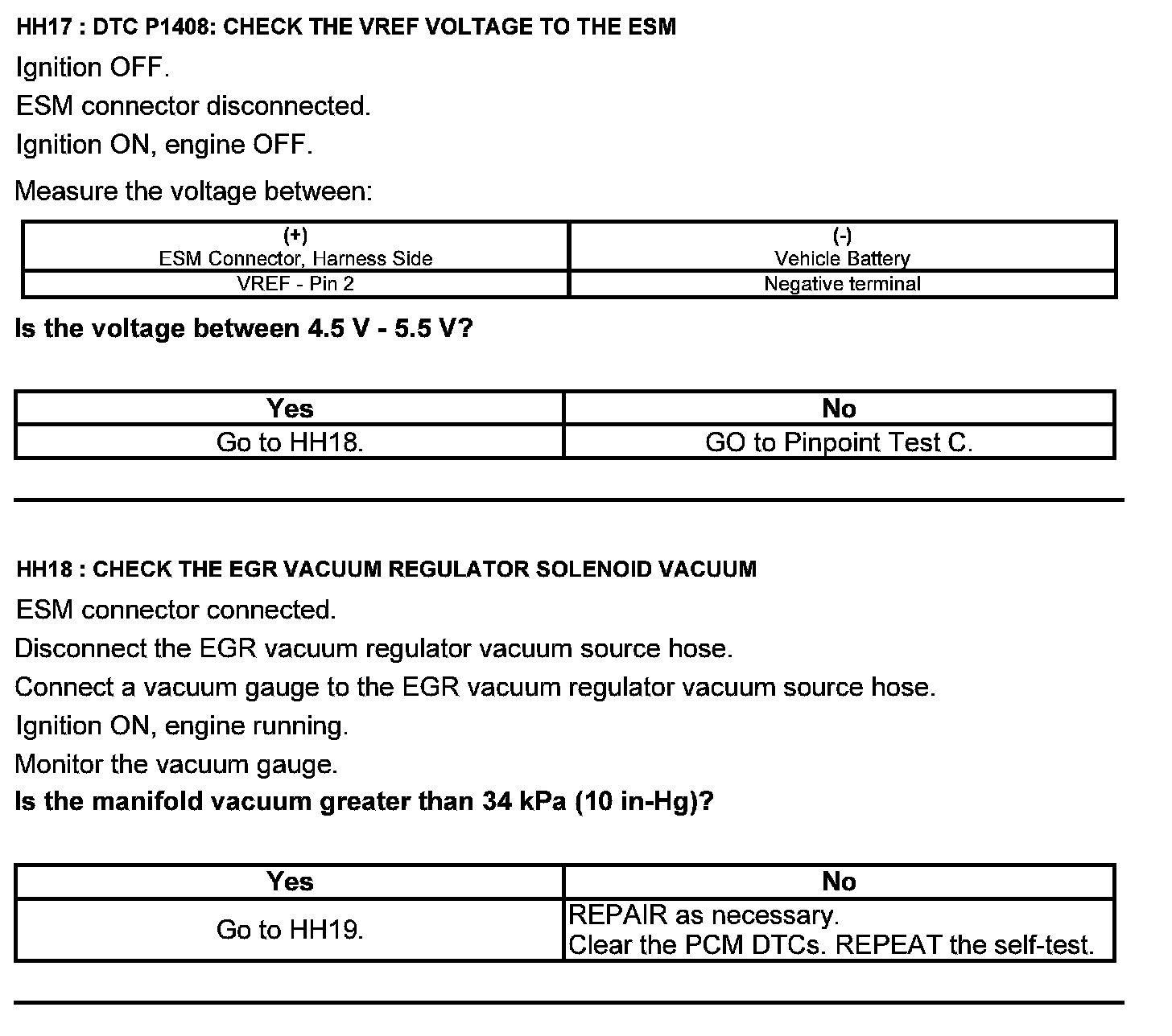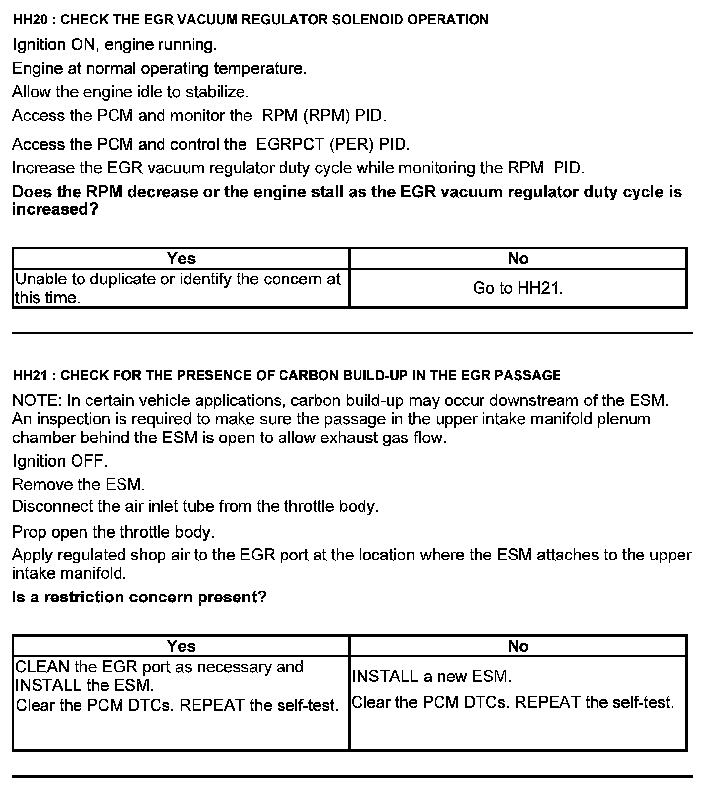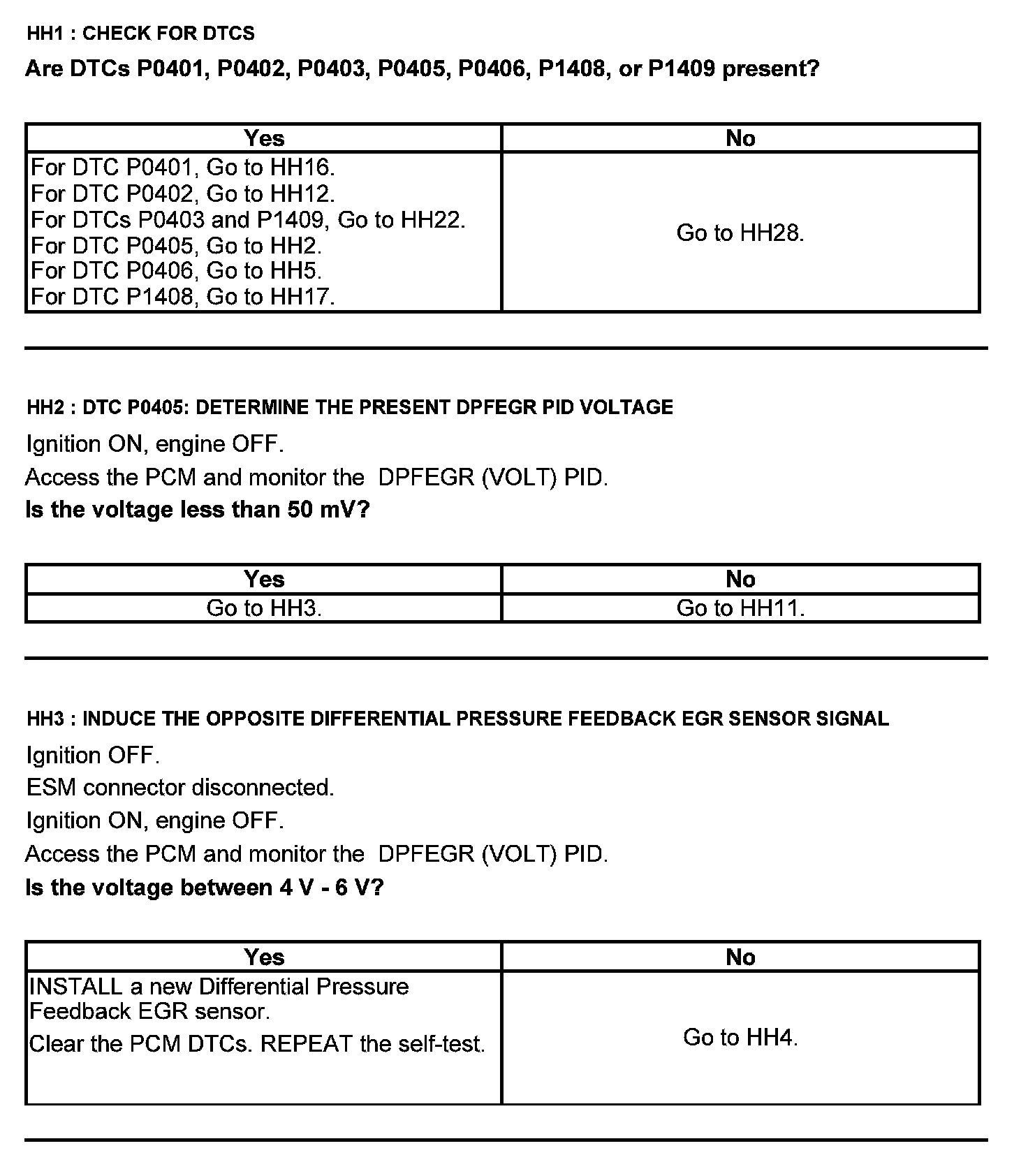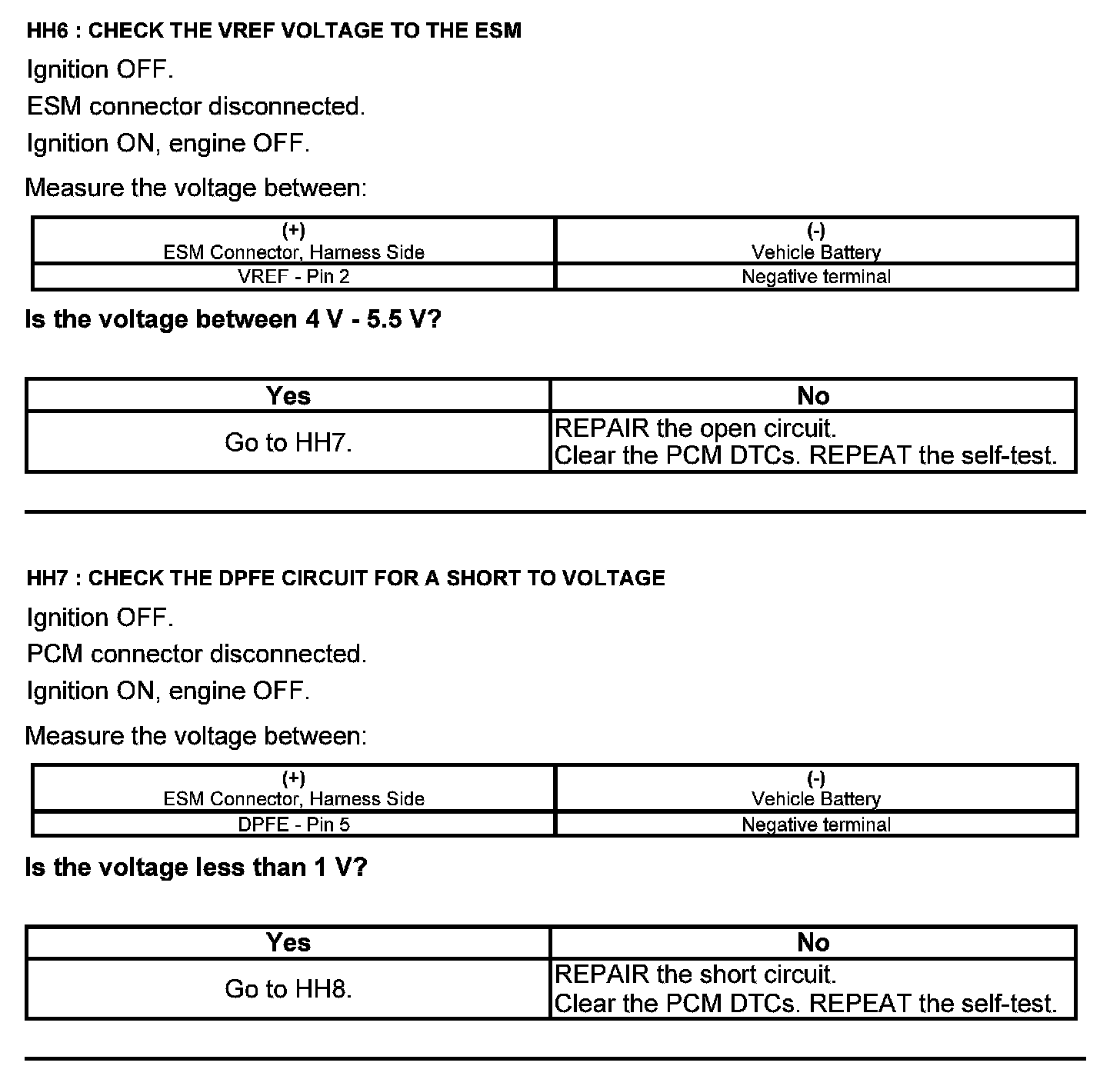 Home >> Ford >> 2012 >> Focus L4-2.0L >> Repair and Diagnosis >> Powertrain Management >> Computers and Control Systems >> Testing and Inspection >> Pinpoint Tests >> Test HH: Exhaust Gas Recirculation System Module (ESM)