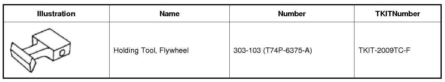 3. Install 303-103 (T74P-6375-A) and remove the 6 bolts and the flywheel.