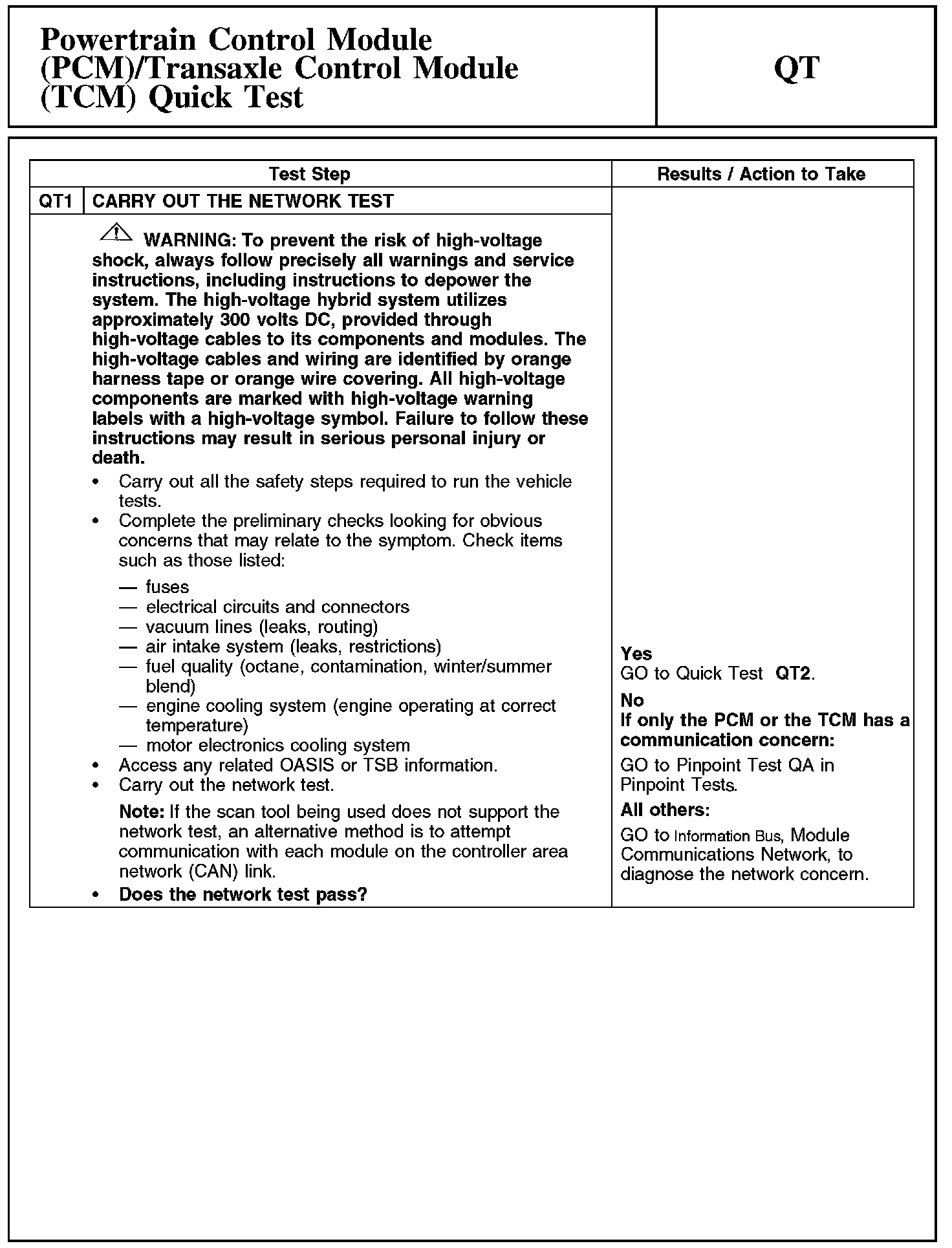 QT: Powertrain Control Module (PCM)/Transaxle Control Module (TCM) Quick Test