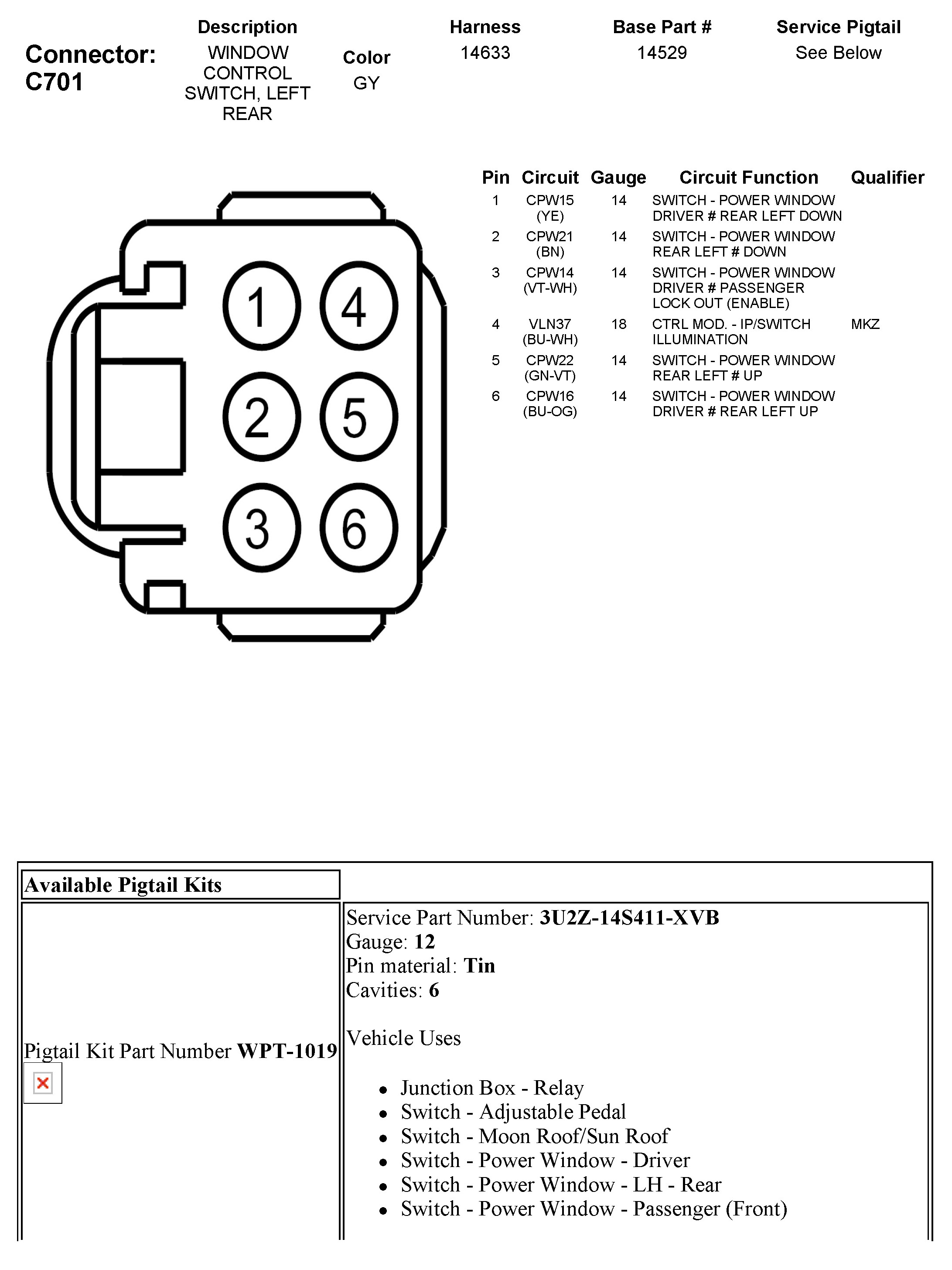 C701 Window Control Switch, Left Rear