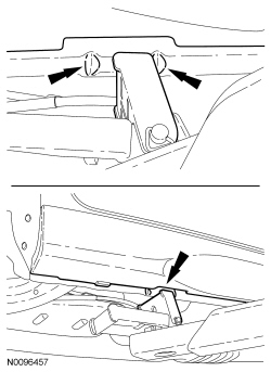 NOTICE: Damage to the suspension, exhaust or steering linkage components may occur if care is not exercised when positioning the hoist adapters prior to lifting the vehicle.
