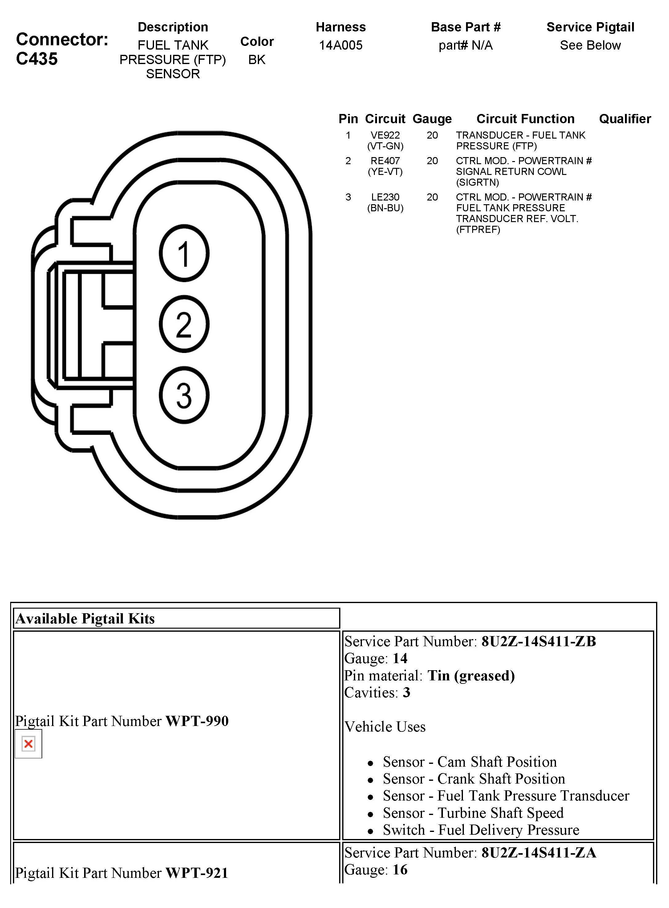 Fuel Tank Pressure Sensor: Diagrams