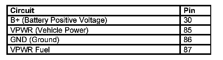 Fuel Pump Control Module Relay Connector - Refer to the Wiring Diagrams for schematic and connector information.