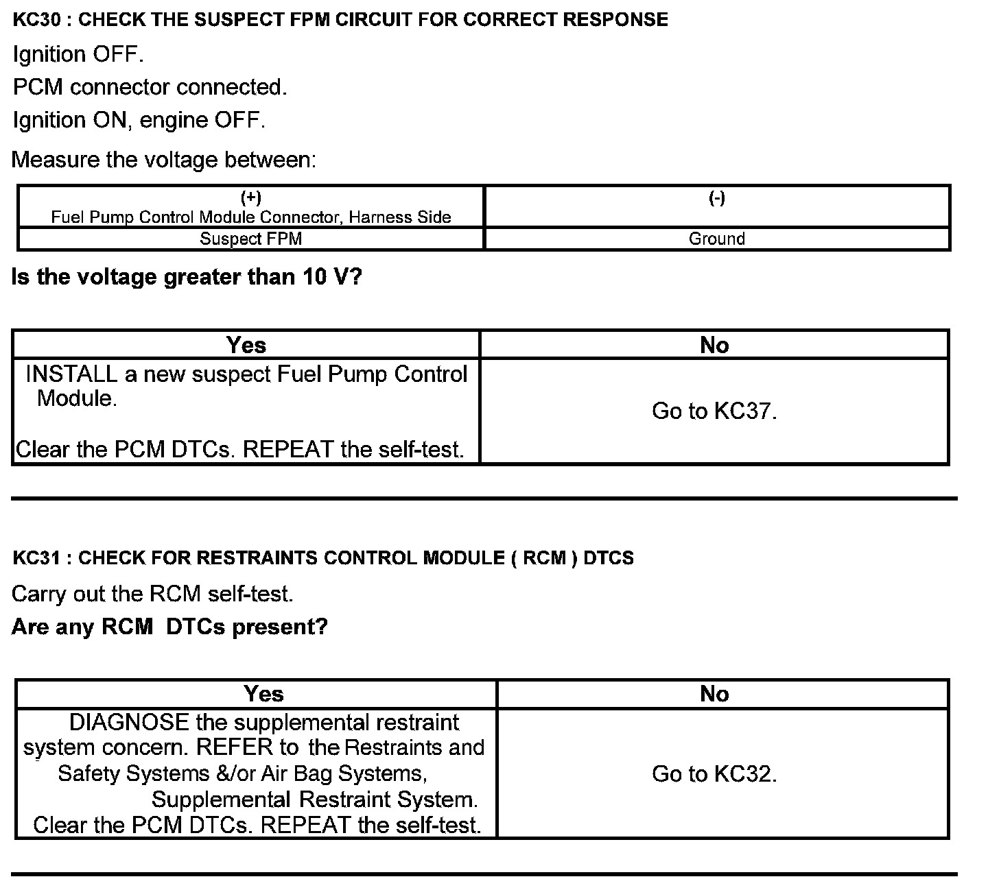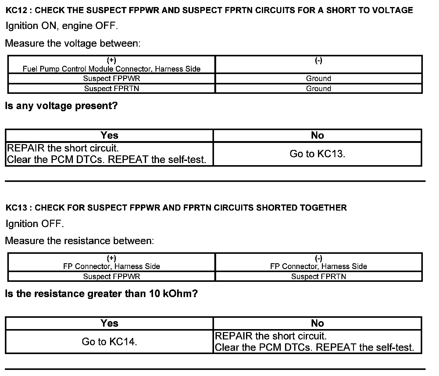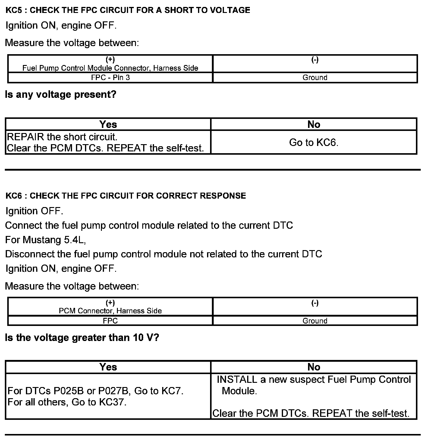 Home >> Ford >> 2012 >> Fusion FWD L4-2.5L >> Repair and Diagnosis >> Powertrain Management >> Computers and Control Systems >> Testing and Inspection >> Pinpoint Tests >> Test KC: Fuel Pump Control Module >> All Others