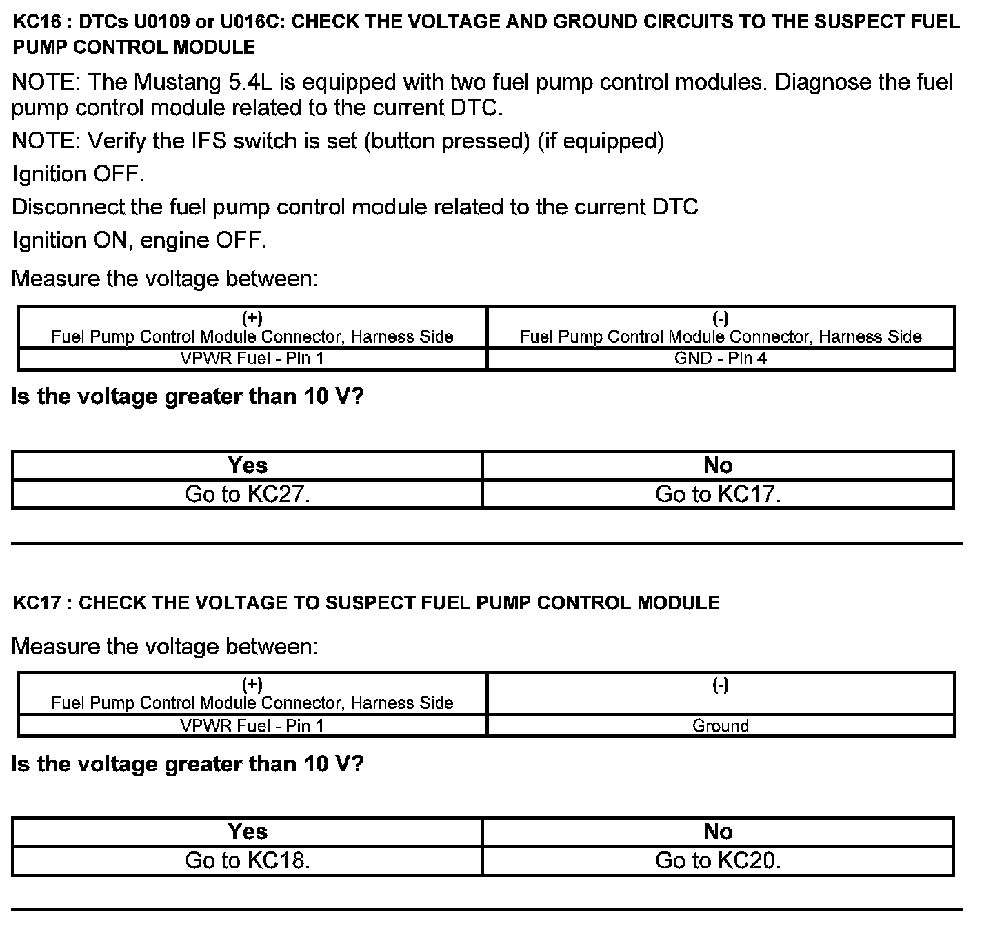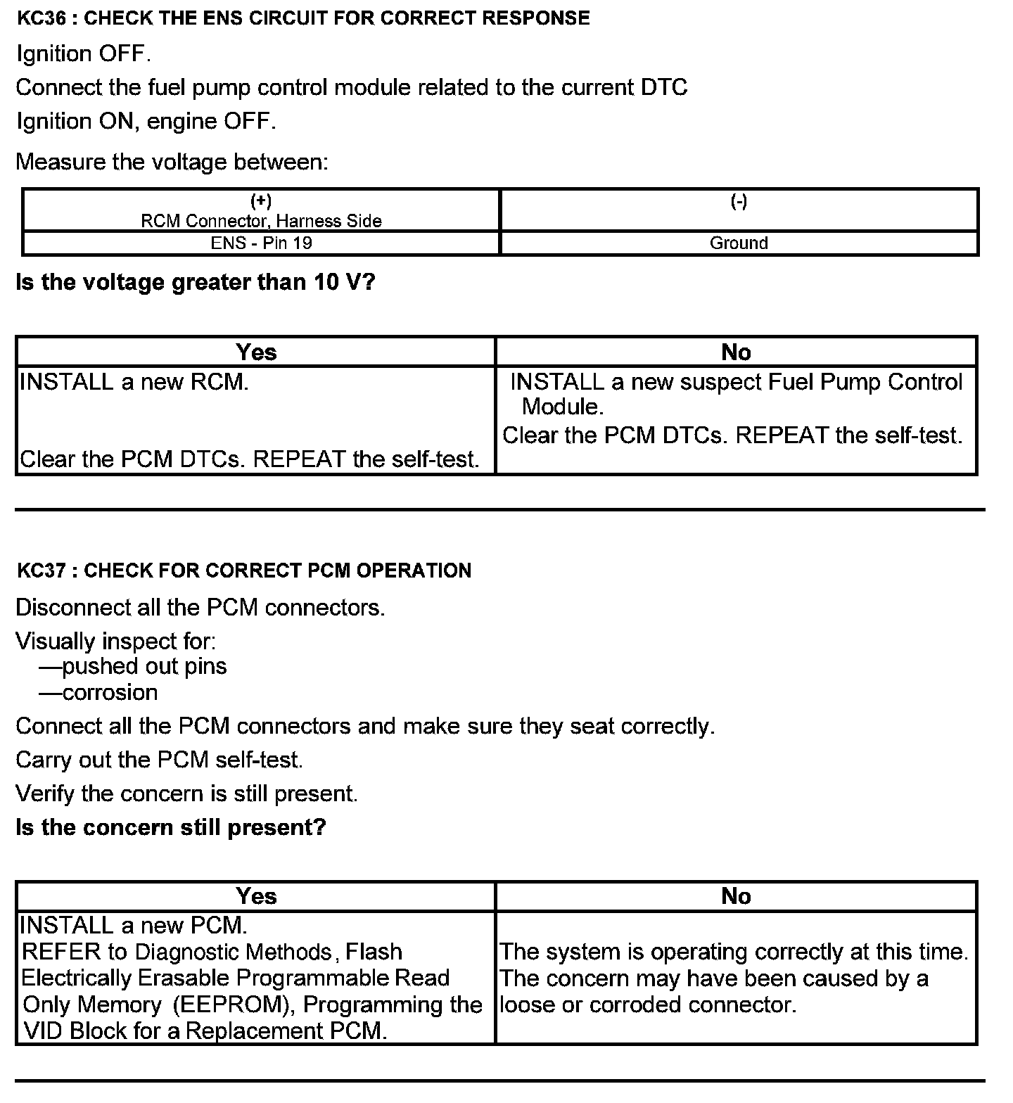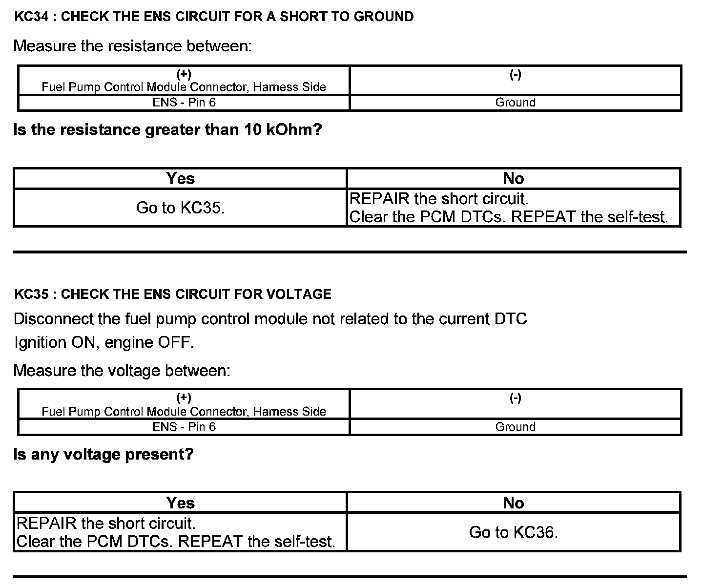 Home >> Ford >> 2012 >> Fusion FWD L4-2.5L >> Repair and Diagnosis >> Powertrain Management >> Computers and Control Systems >> Testing and Inspection >> Pinpoint Tests >> Test KC: Fuel Pump Control Module >> All Others