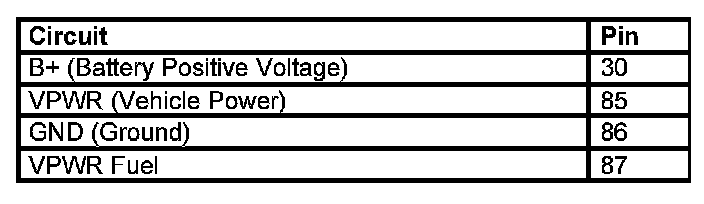 Fuel Pump Control Module Relay Connector - Refer to the Wiring Diagrams for schematic and connector information.