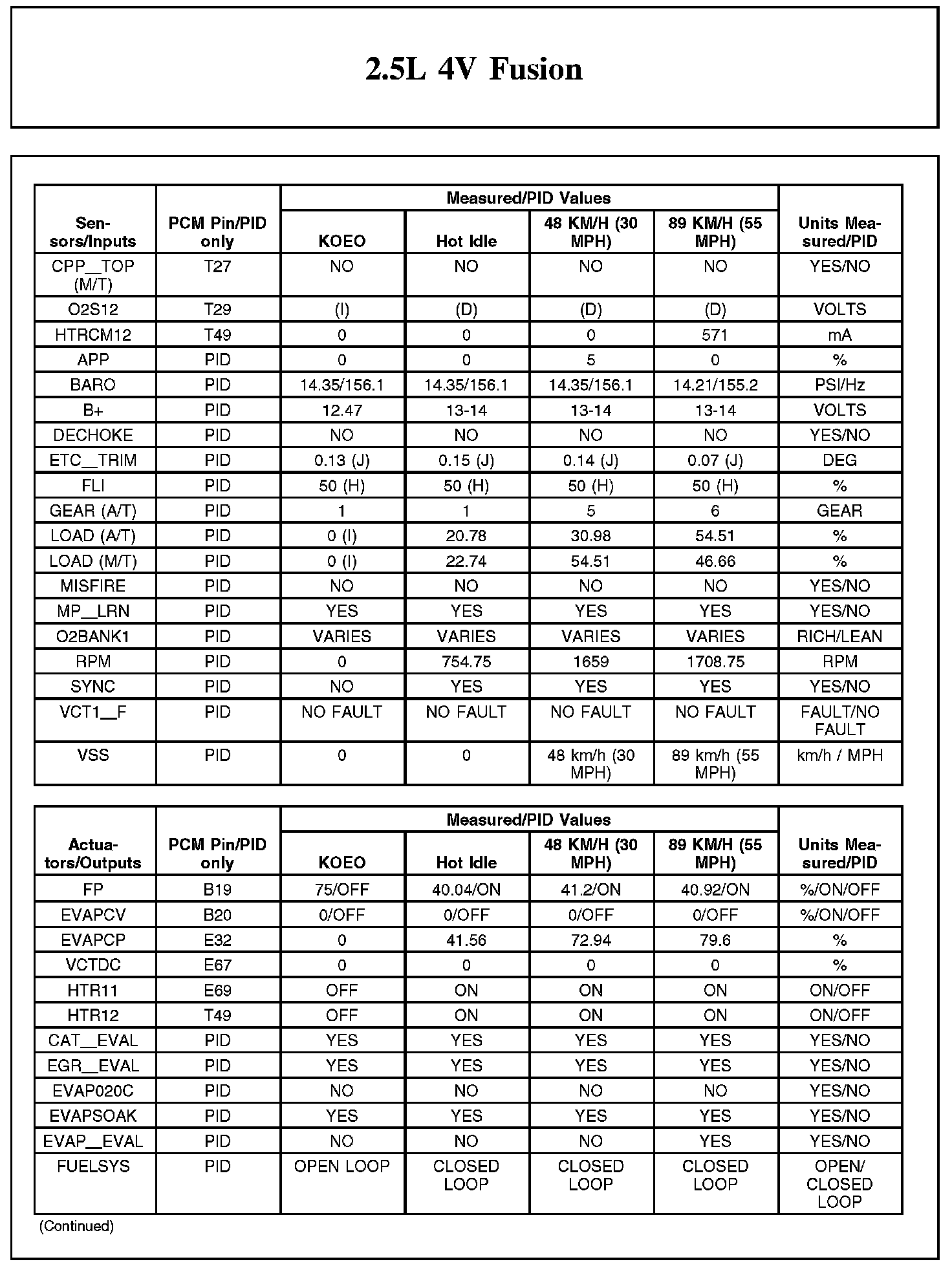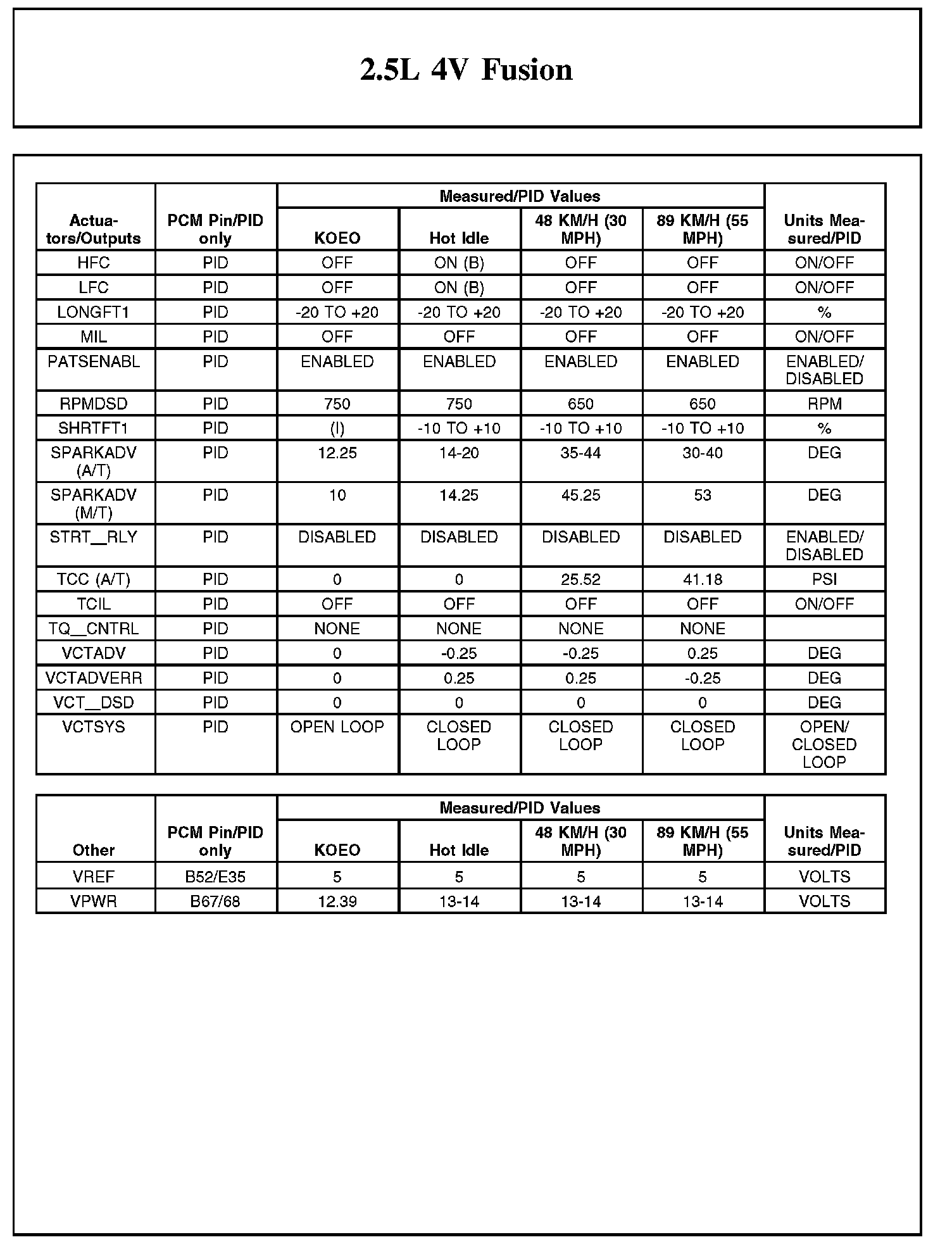 Home >> Ford >> 2012 >> Fusion FWD L4-2.5L >> Repair and Diagnosis >> Powertrain Management >> Computers and Control Systems >> Testing and Inspection >> Scan Tool Testing and Procedures >> Typical Diagnostic Reference Values