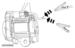 9. Deploy the Safety Canopy(R)/side air curtain module by touching the ends of the 2 wires of the jumper harness to the terminals of a 12-volt battery.