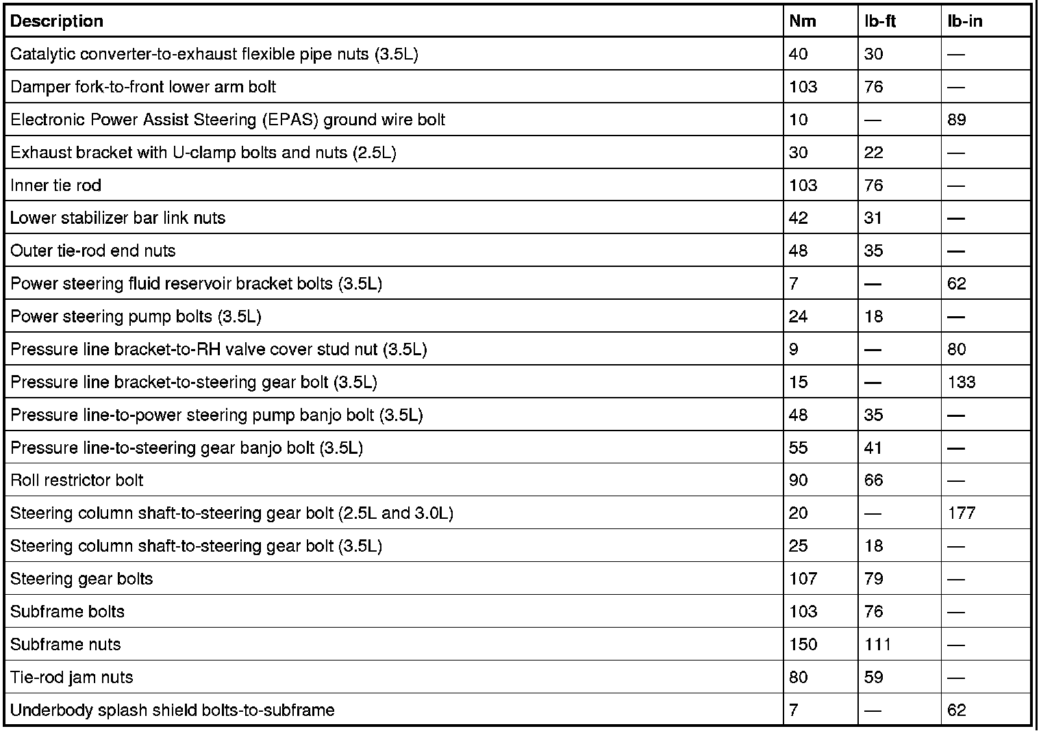 Torque Specifications