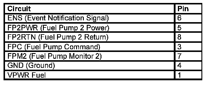 Fuel Pump Control Module Relay Connector - Refer to the Wiring Diagrams for schematic and connector information.