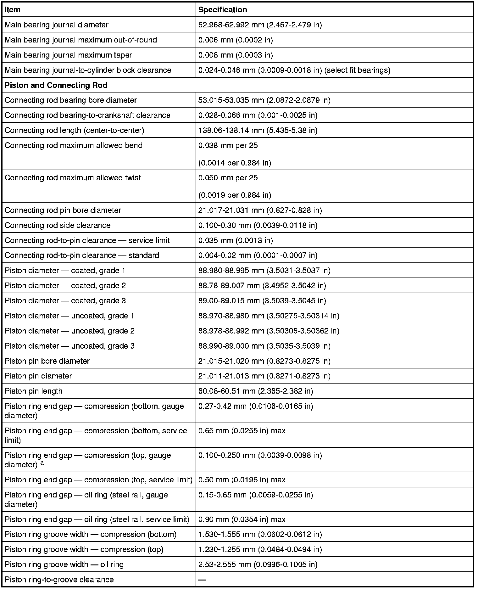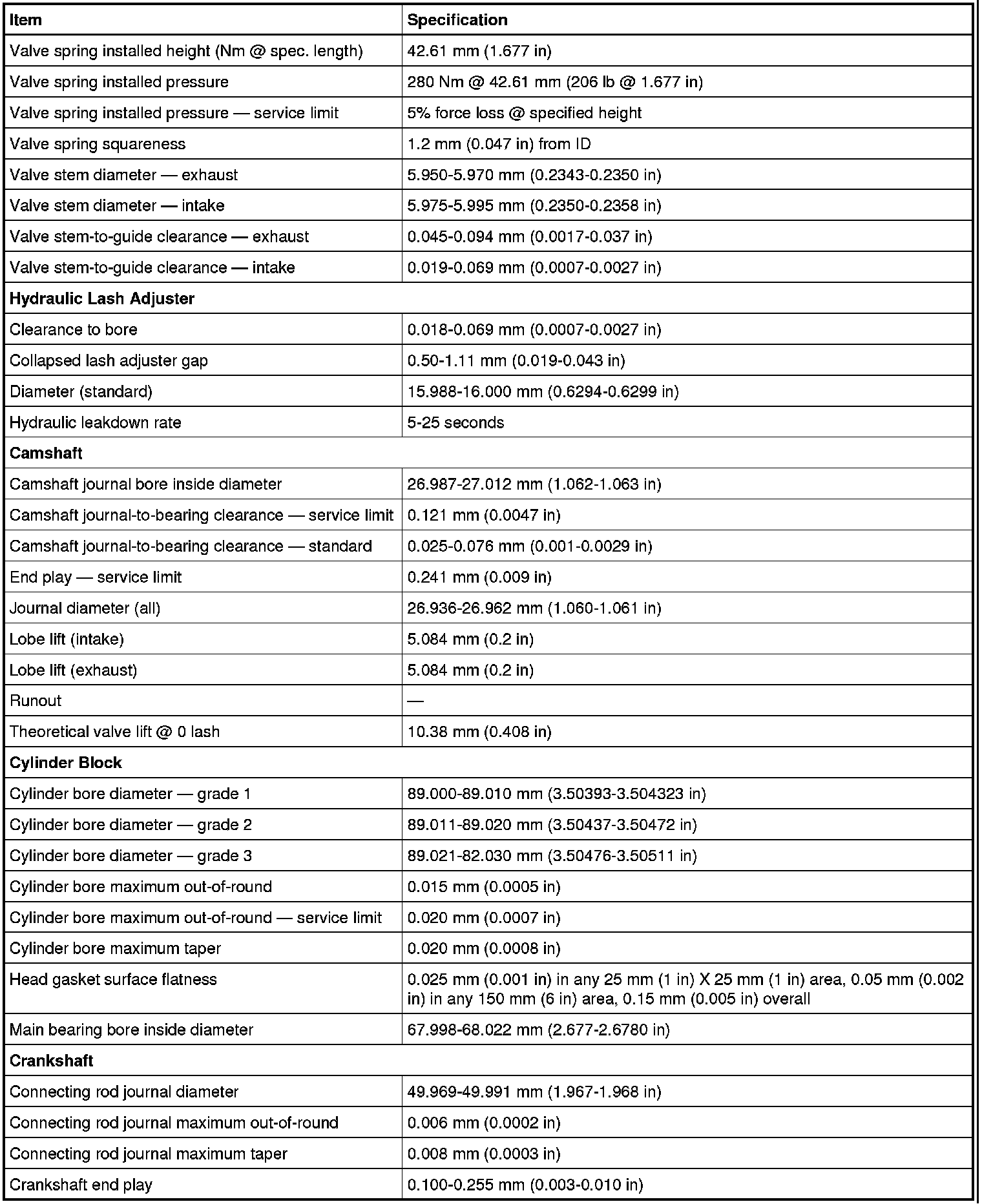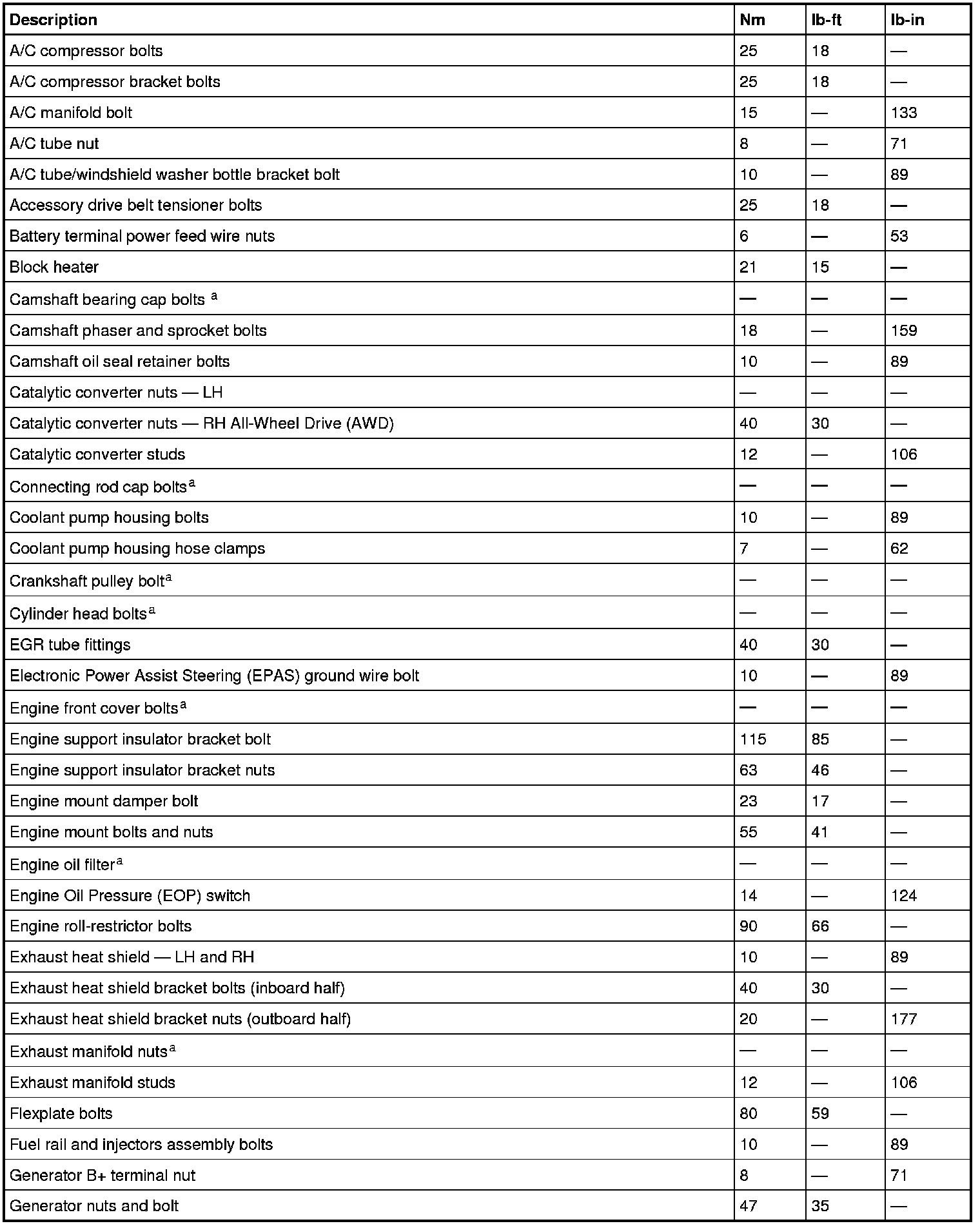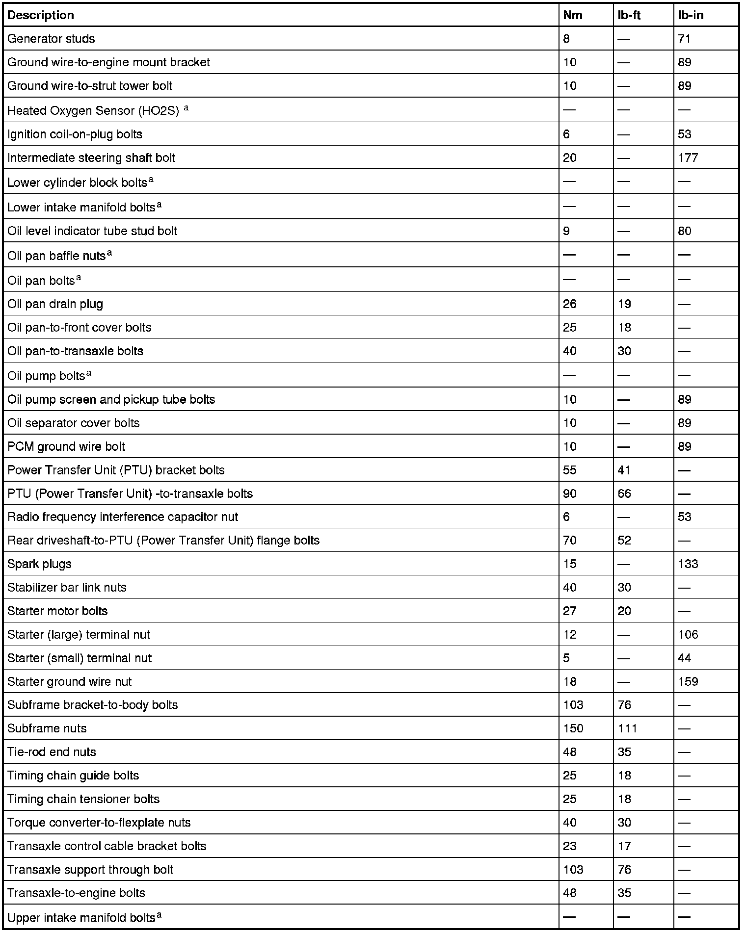 Torque Specifications