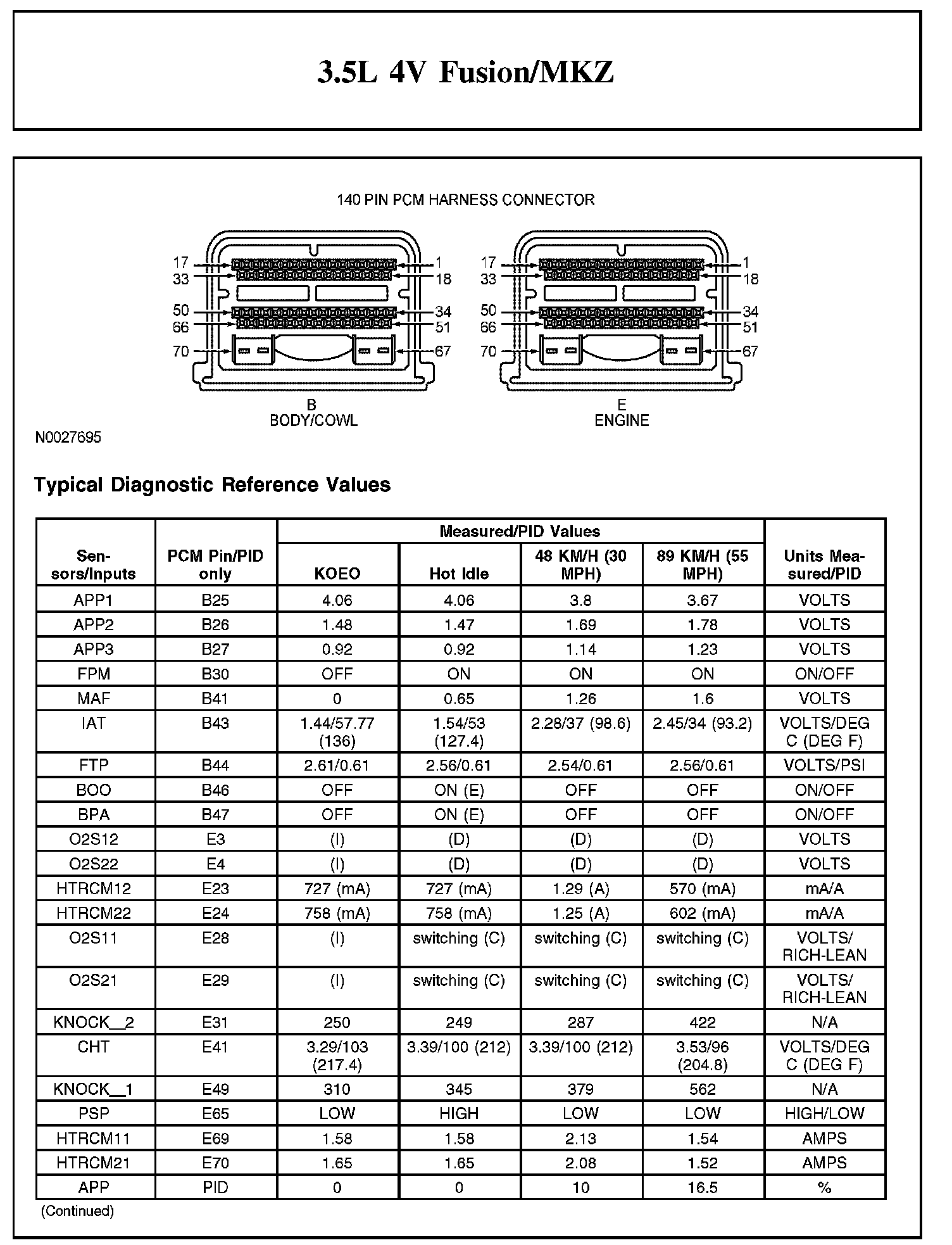Home >> Ford >> 2012 >> Fusion FWD V6-3.5L >> Repair and Diagnosis >> Powertrain Management >> Computers and Control Systems >> Testing and Inspection >> Scan Tool Testing and Procedures >> Typical Diagnostic Reference Values