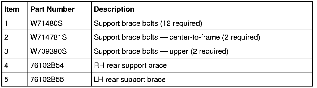 NOTE: The 2 rear support braces must be removed and installed at the same time.