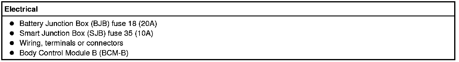9. If the DTCs retrieved are related to the concern, go to the Body Control Module B (BCM-B) DTC Chart Body Control Module.