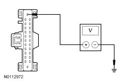 - Measure the voltage between the BCM-B (Body Control Module B) C4368A-1, circuit SBB18 (YE/RD), harness side and ground.