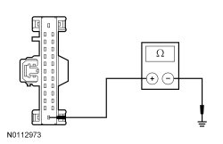 - Measure the resistance between the BCM-B (Body Control Module B) C4368A-13, circuit GD110 (BK/WH), harness side and ground.
