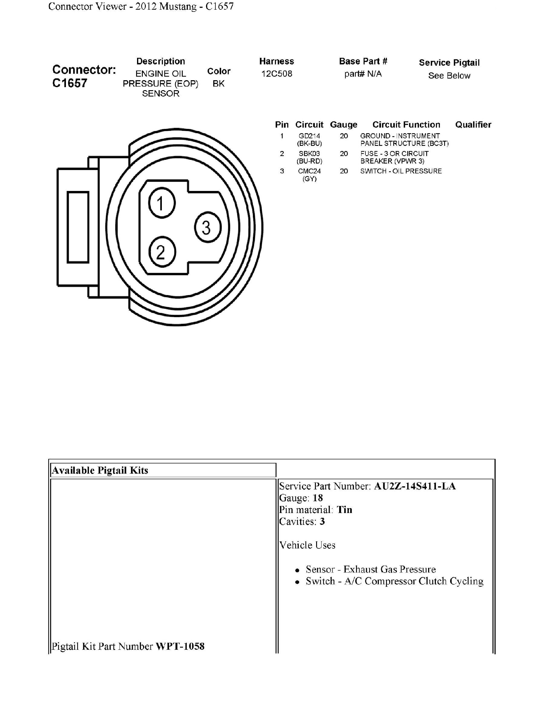 Oil Pressure Sensor: Diagrams