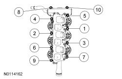 Using new lower intake manifold gaskets, install the lower intake manifold and the 10 bolts and tighten in the sequence shown.