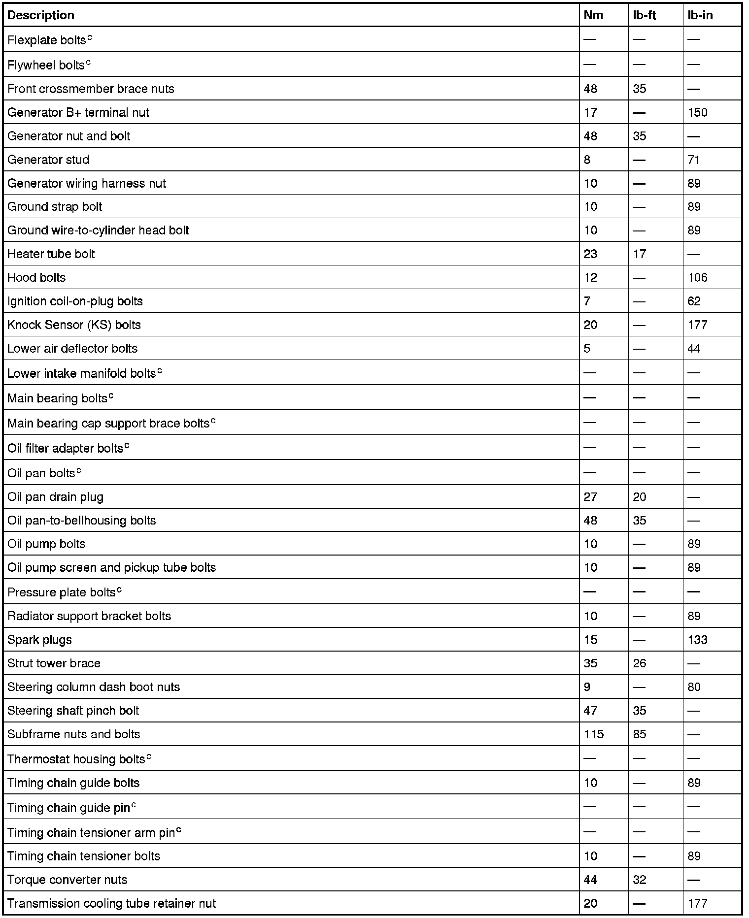 Torque Specifications