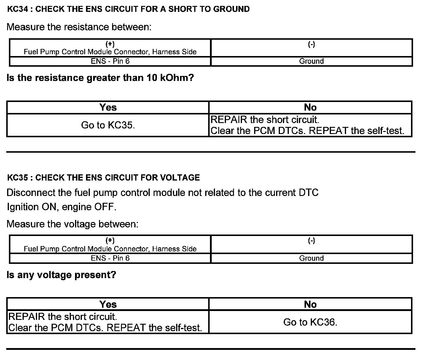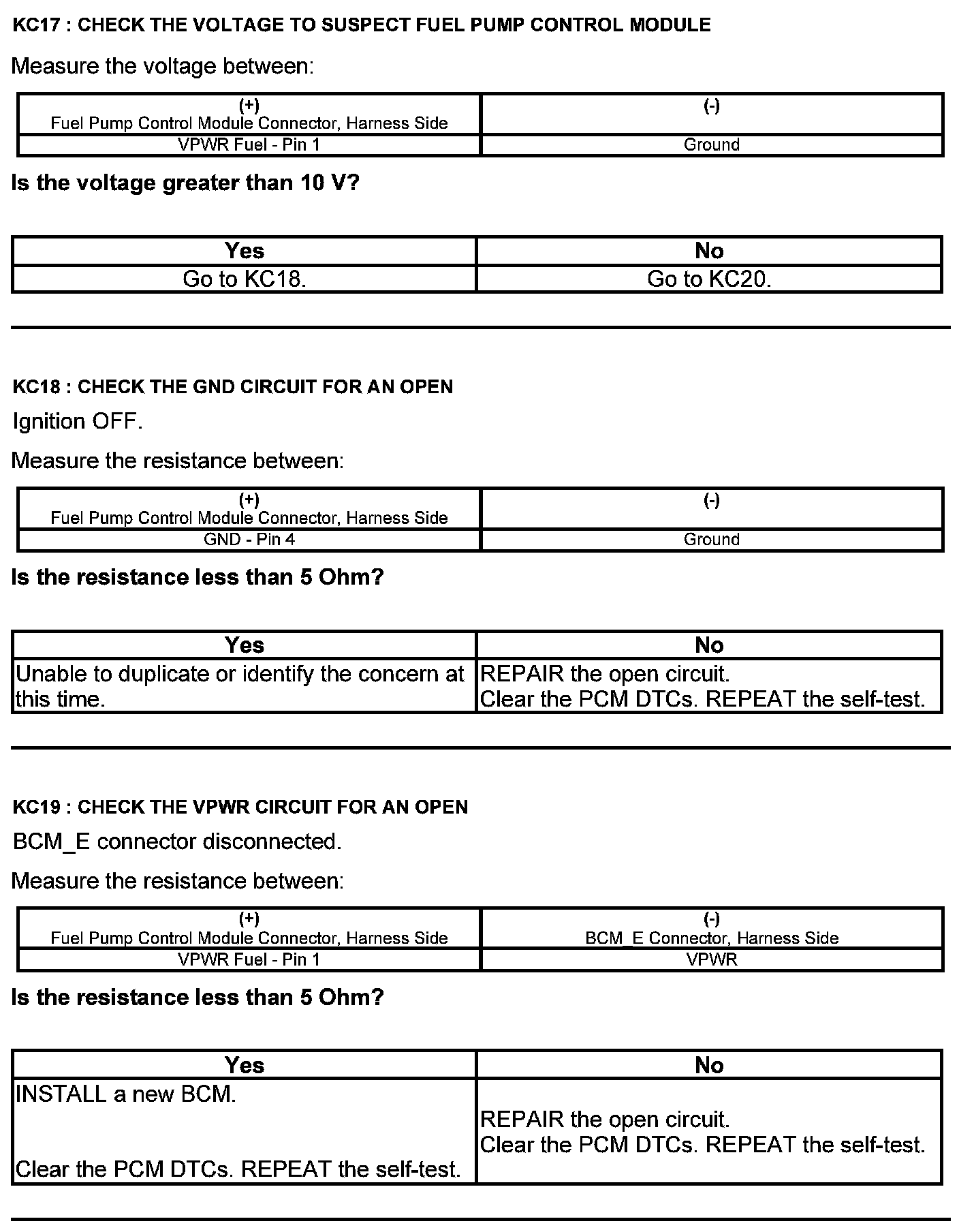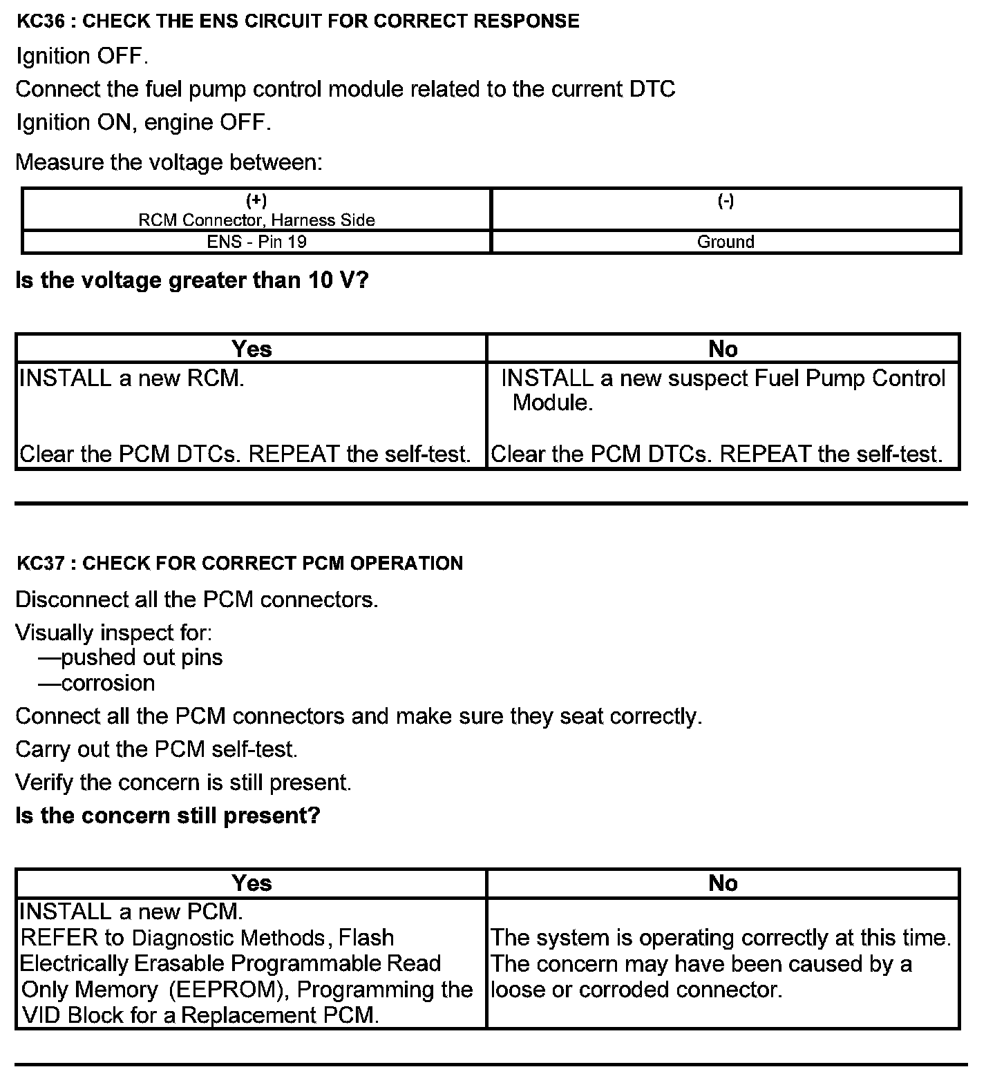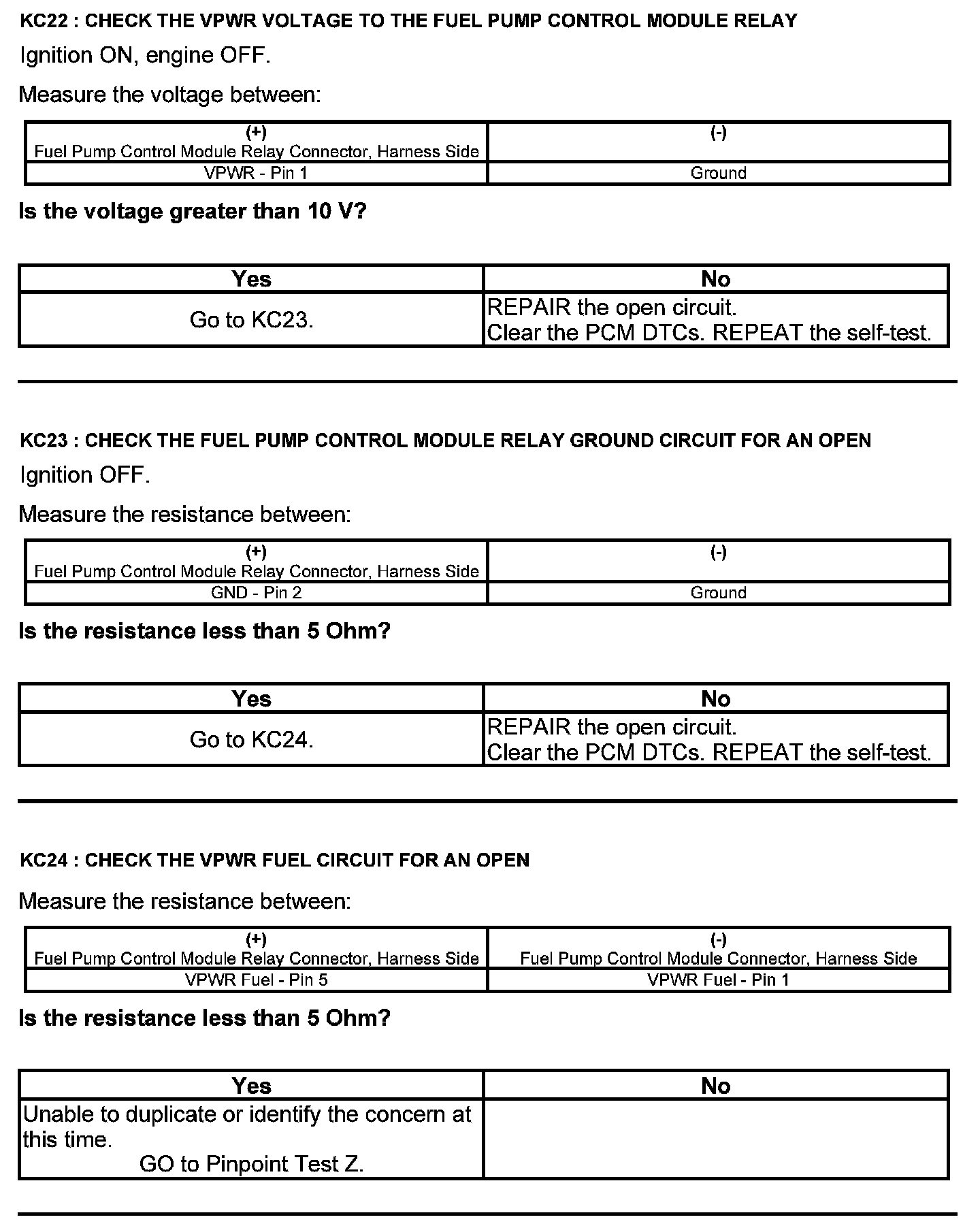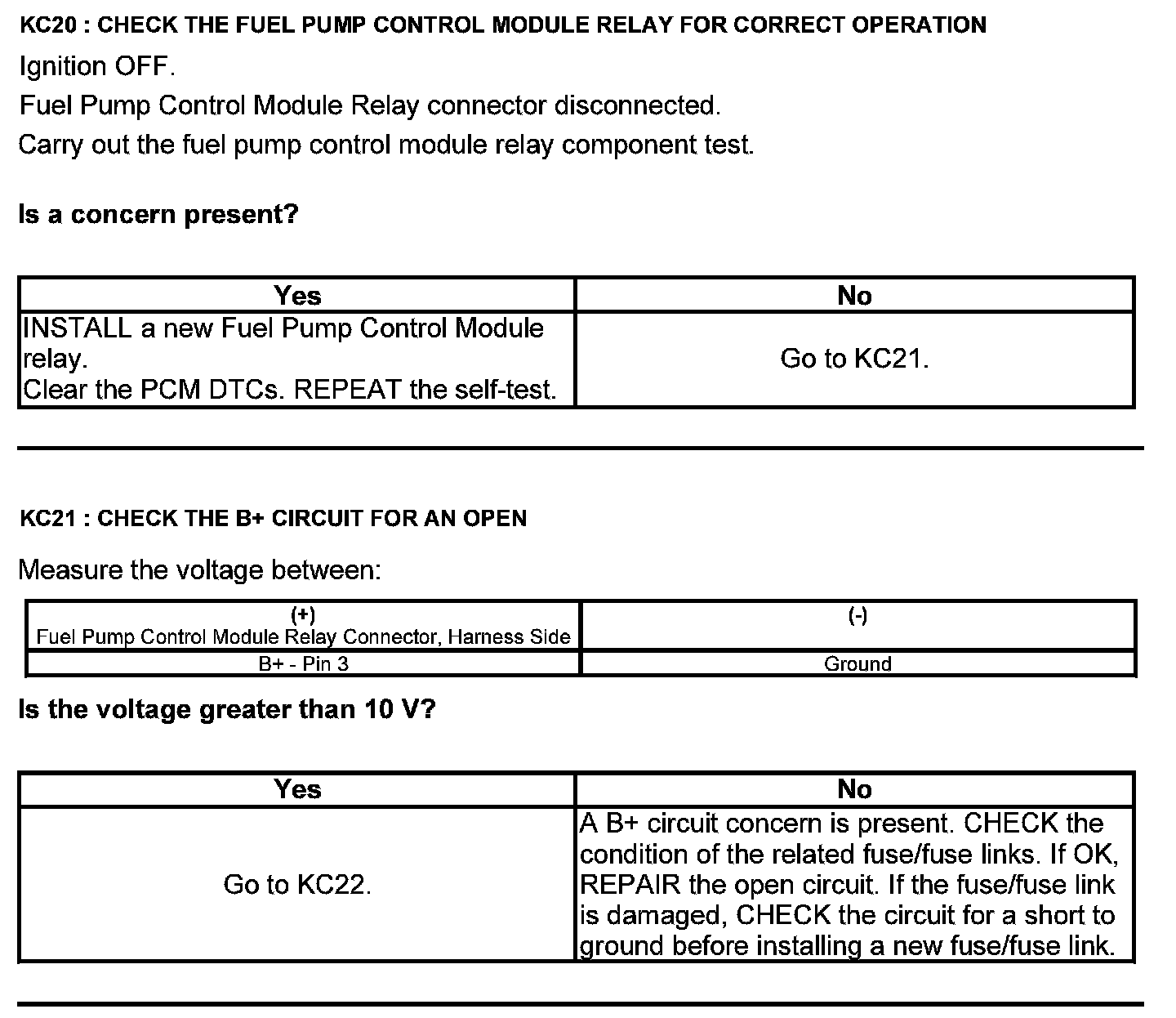 Home >> Ford >> 2012 >> Mustang V8-5.0L VIN F >> Repair and Diagnosis >> Powertrain Management >> Computers and Control Systems >> Testing and Inspection >> Pinpoint Tests >> Test KC: Fuel Pump Control Module