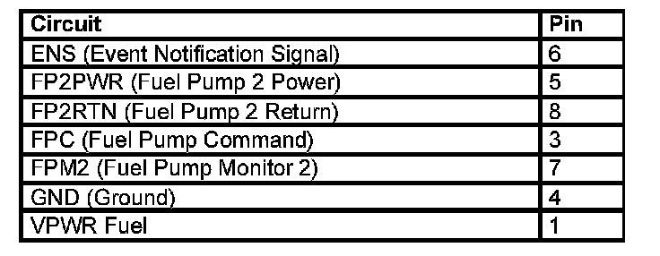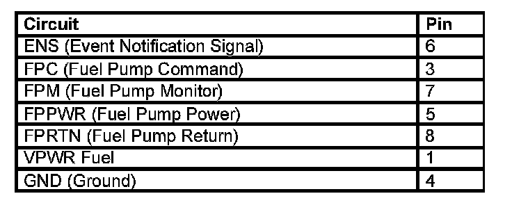 Fuel Pump Control Module Relay Connector - Refer to the Wiring Diagrams for schematic and connector information.