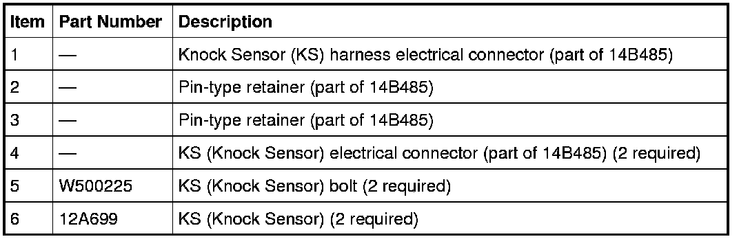 NOTICE: Note the position and orientation of each Knock Sensor (KS). The sensors must be installed in the same position as removed or damage to the sensors may occur.