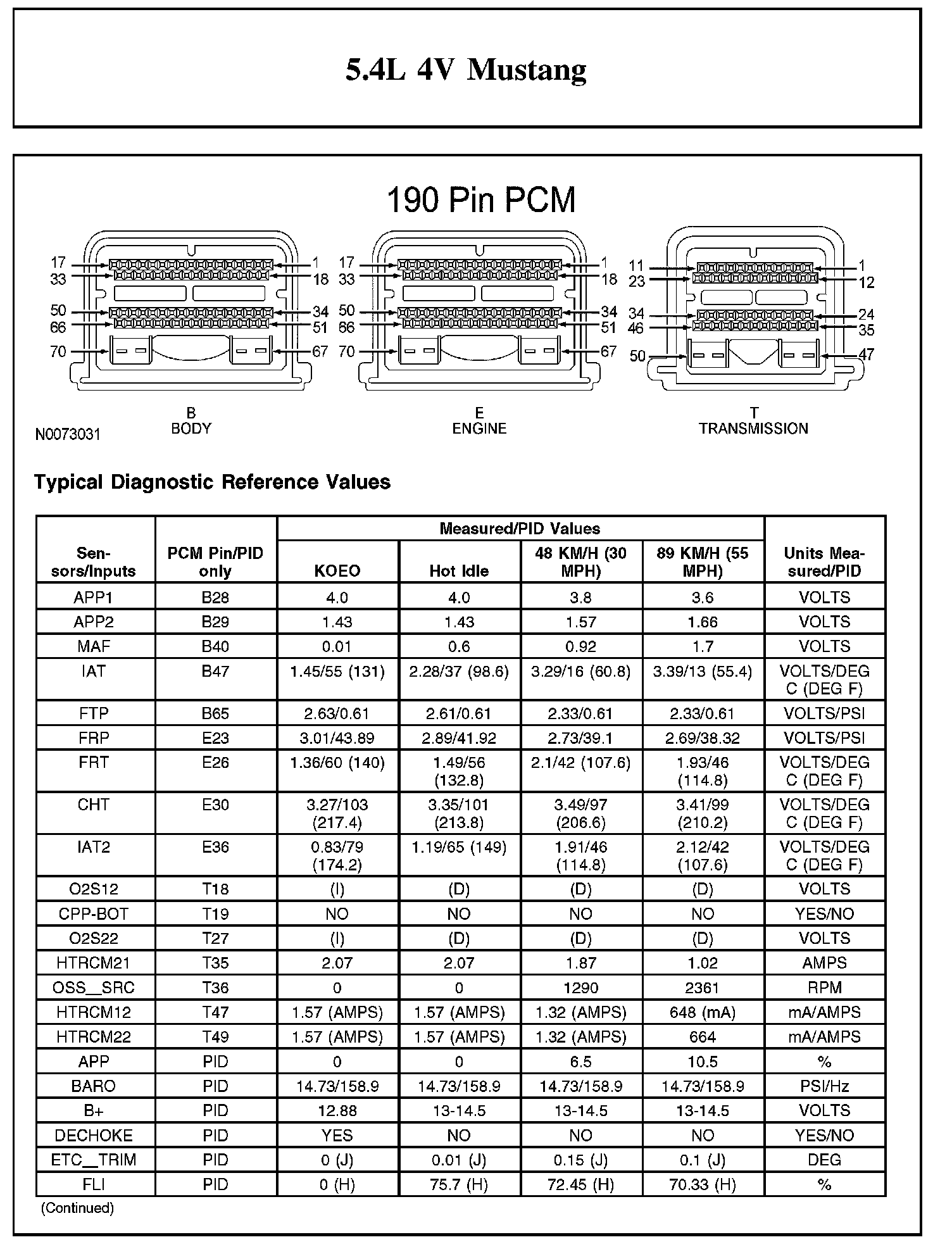 Home >> Ford >> 2012 >> Mustang V8-5.4L SC >> Repair and Diagnosis >> Powertrain Management >> Computers and Control Systems >> Testing and Inspection >> Scan Tool Testing and Procedures >> Typical Diagnostic Reference Values