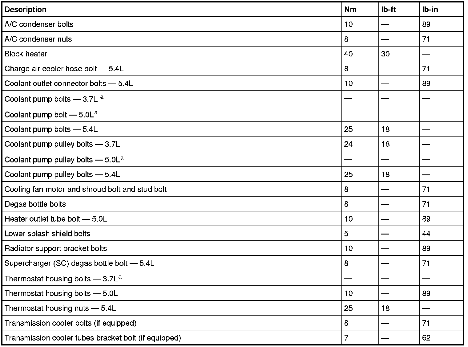 Torque Specifications