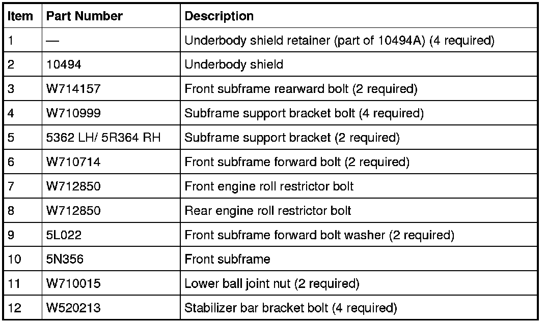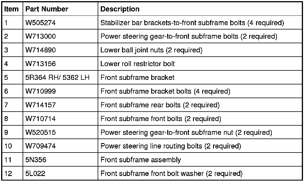 Remove and discard the subframe bracket-to-body bolts.