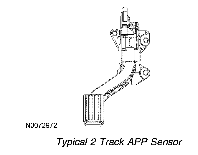 The APP sensor is an input to the powertrain control module (PCM) and determines the amount of torque requested by the operator. Depending on the application, either a 2 track or 3 track APP sensor is used.