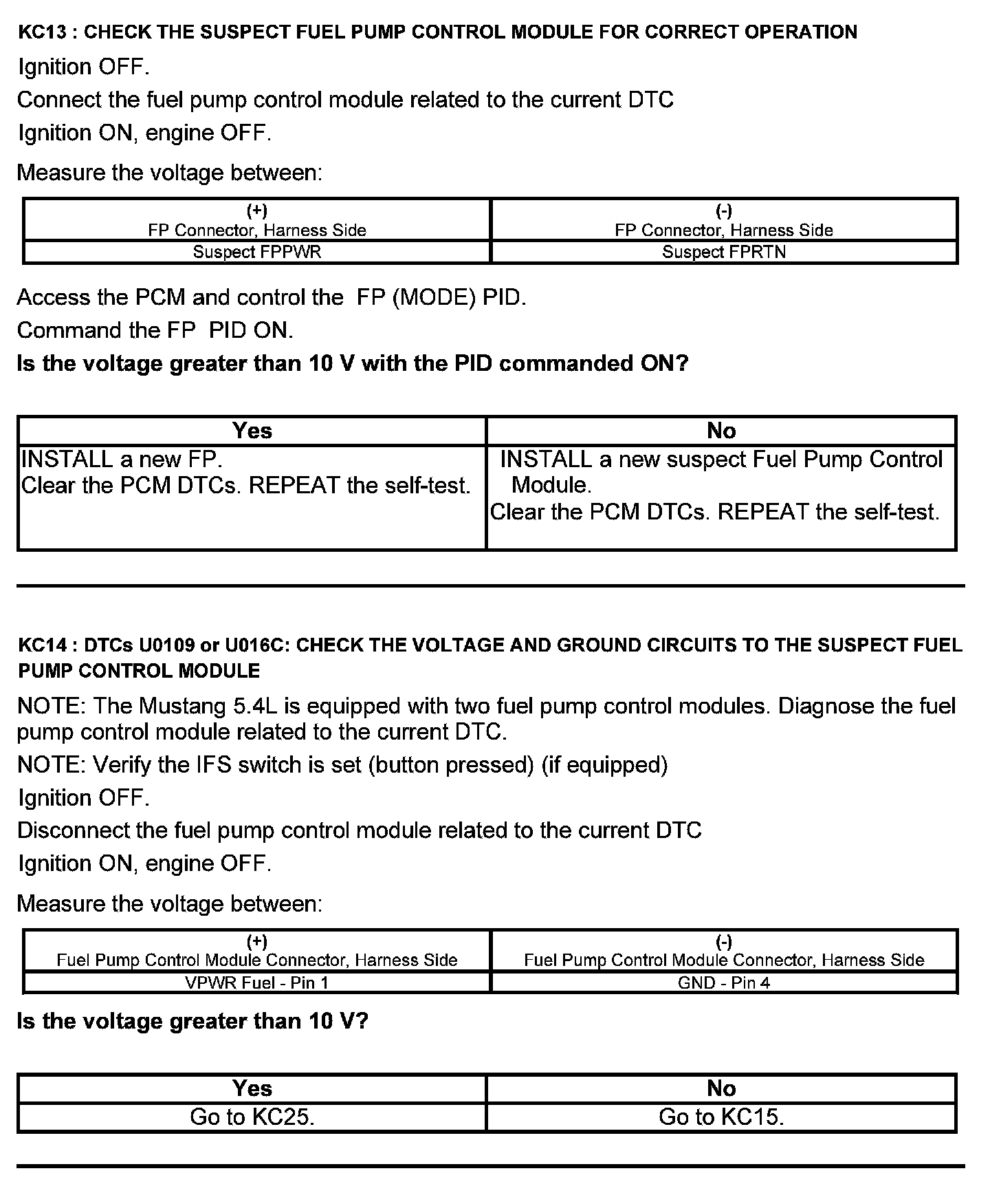 Test KC: Fuel Pump Control Module