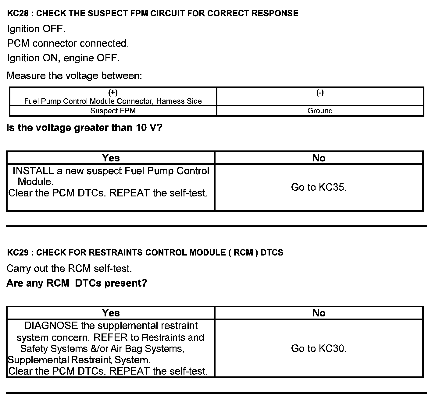 Home >> Ford >> 2012 >> Taurus AWD V6-3.5L >> Repair and Diagnosis >> Powertrain Management >> Computers and Control Systems >> Testing and Inspection >> Pinpoint Tests >> Test KC: Fuel Pump Control Module